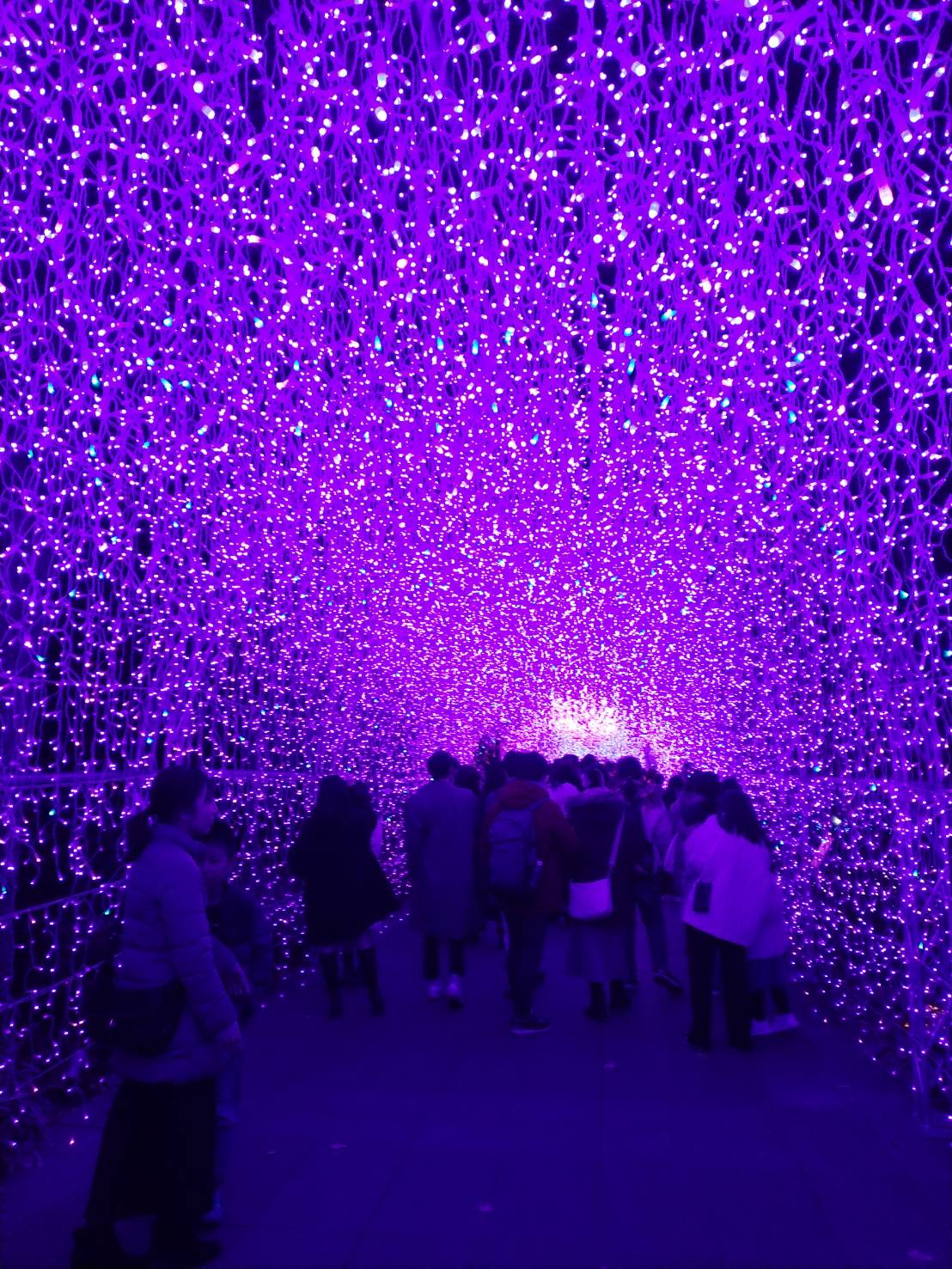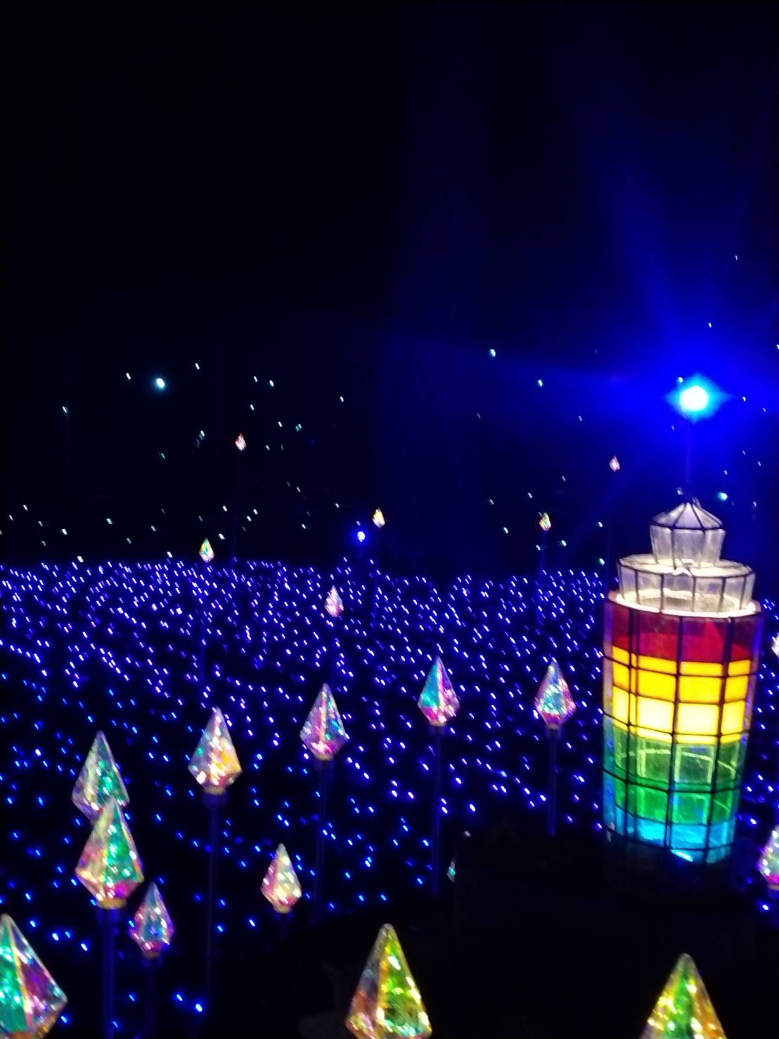 カラフルなイルミの江の島タワーを俯瞰撮影した写真が幻想的です