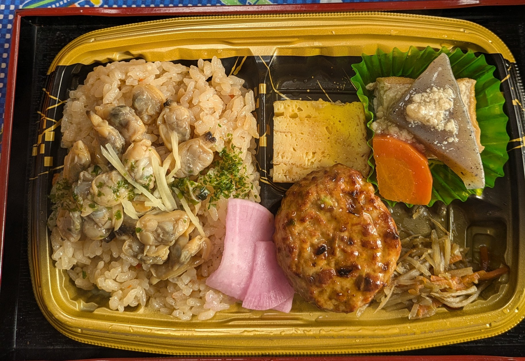 介護が忙しいのでランチはスーパーのあさりハンバーグ弁当食べました
