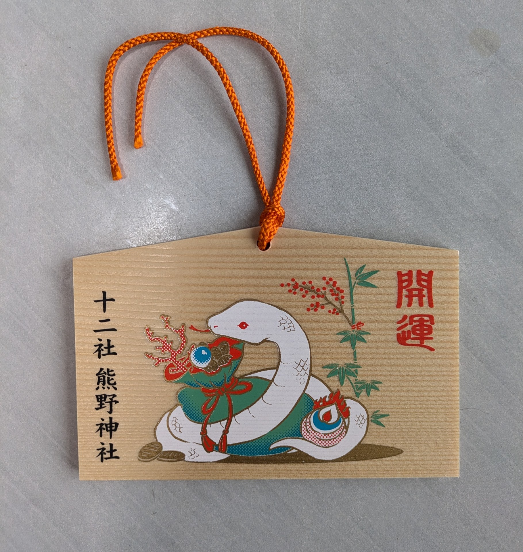 西新宿十二社熊野神社の巳年の絵馬を授かりました 500円でした