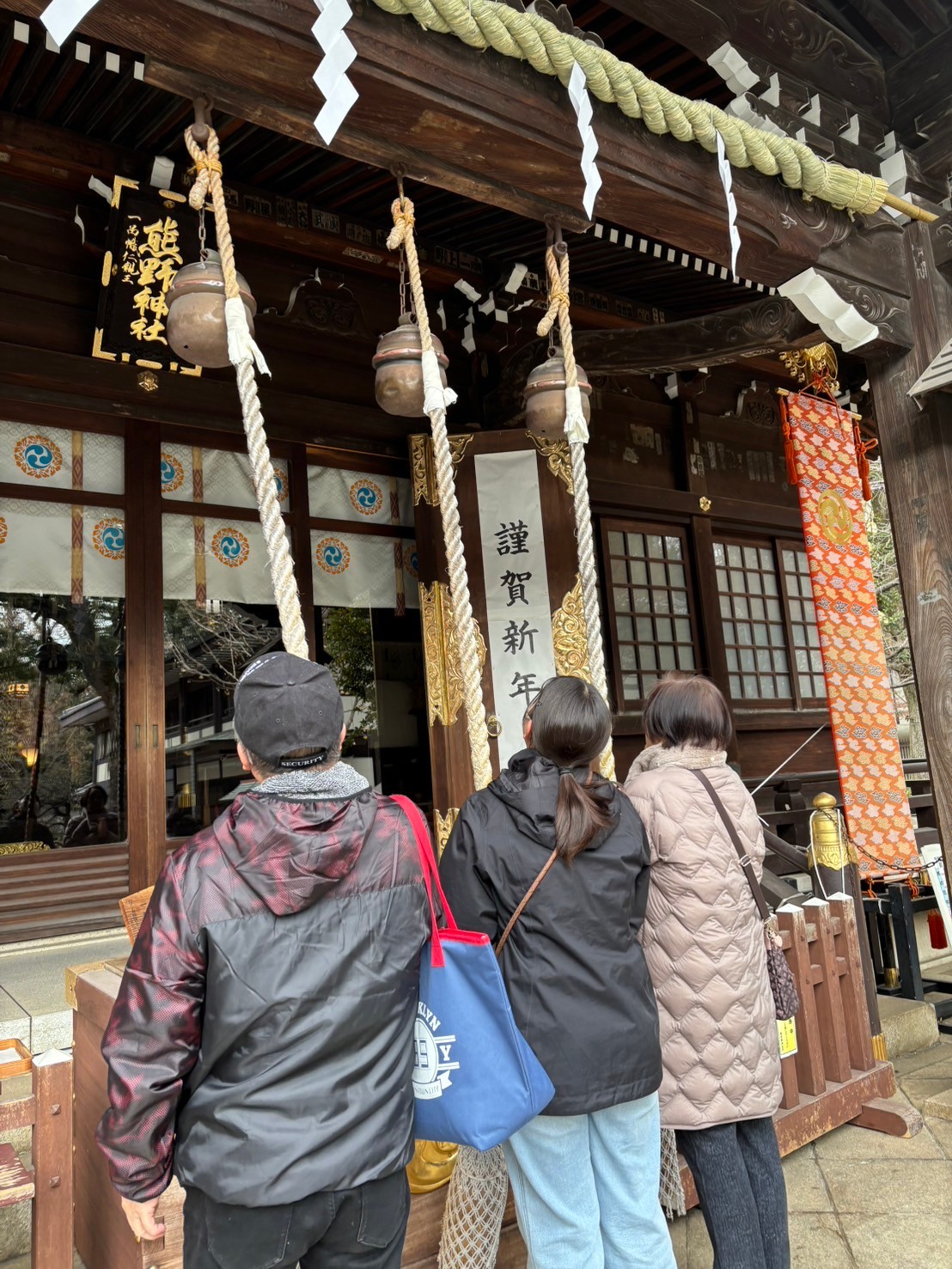 私と孫と妻 3人でお参り 願い事の後に名前と住所も伝えました
