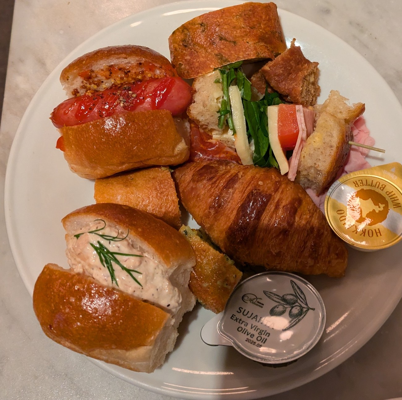 HOTELの焼き立てのパン バターやオリーブオイルをかけ頂きました