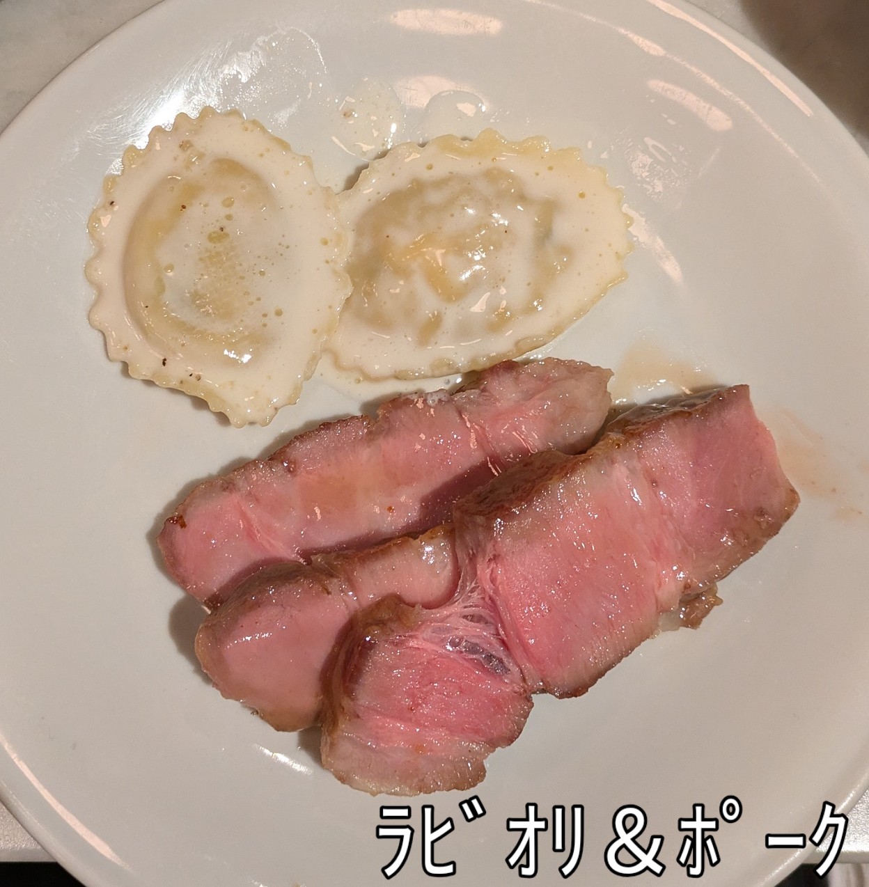 ラビオリとポークのステーキは柔らかくて美味しかったです
