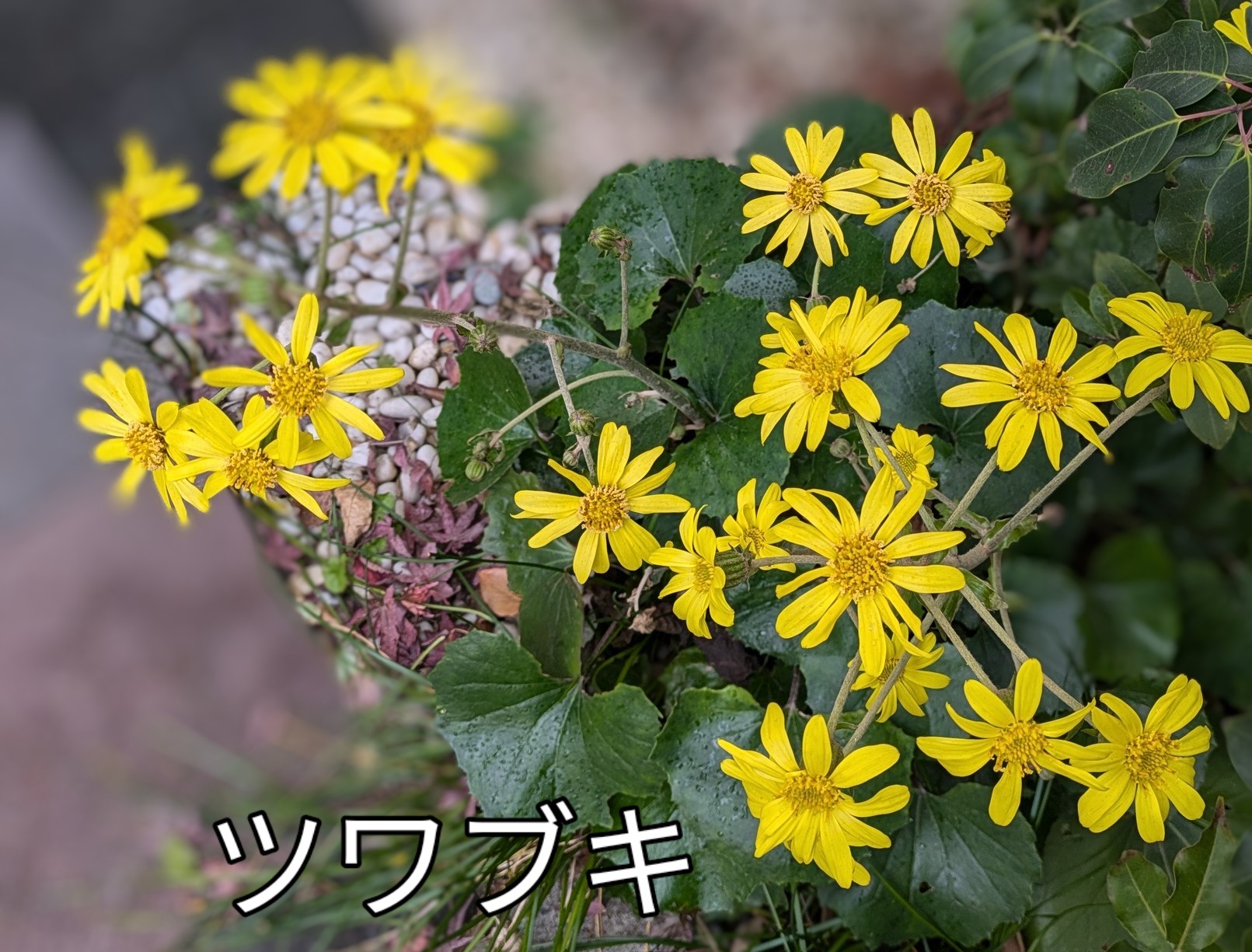 ツワブキの花をアップ撮影しました スマホで背景をぼかしました