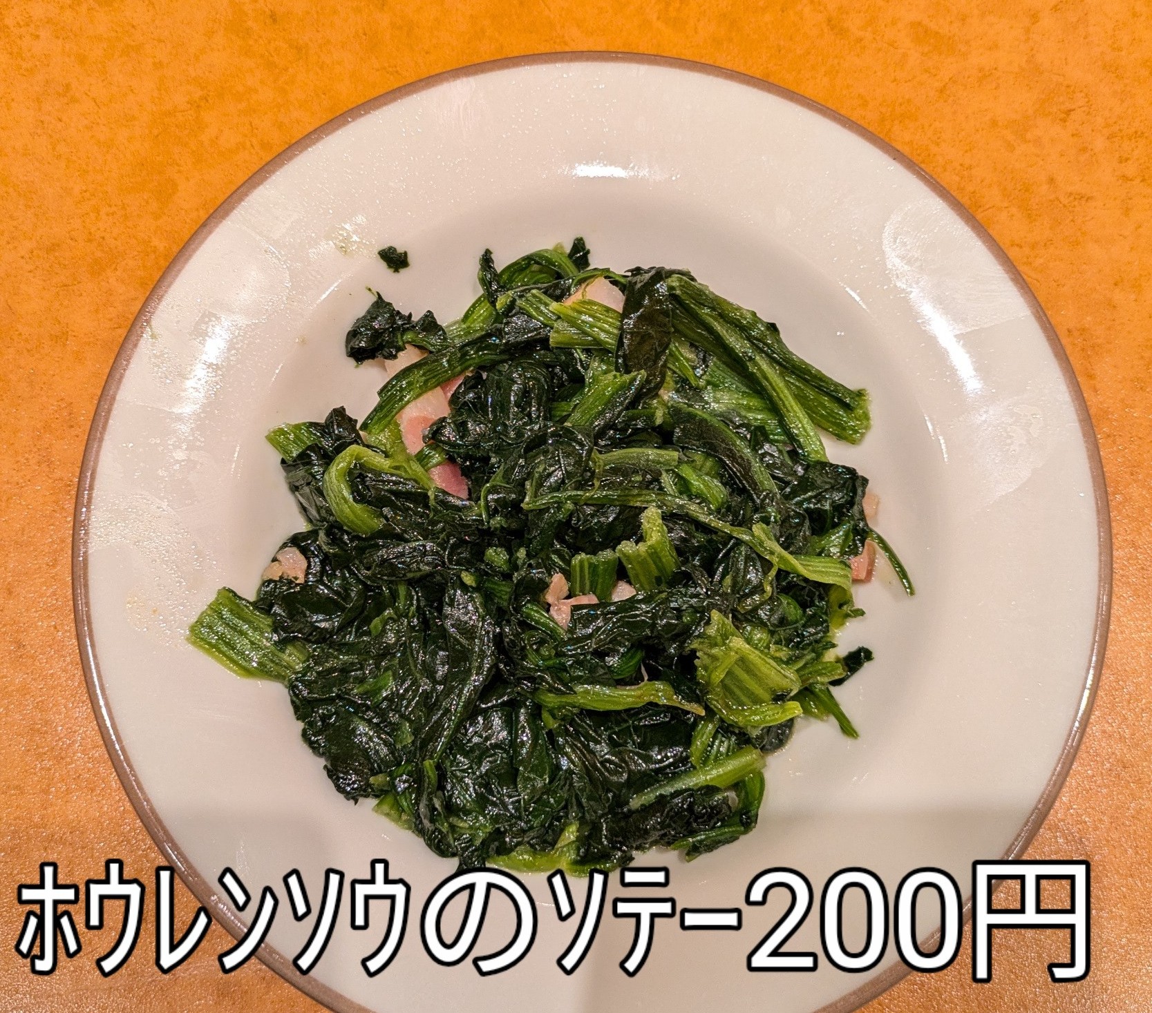 ホウレンソウとベーコンのソテー(200円)妻とシェアして食べました
