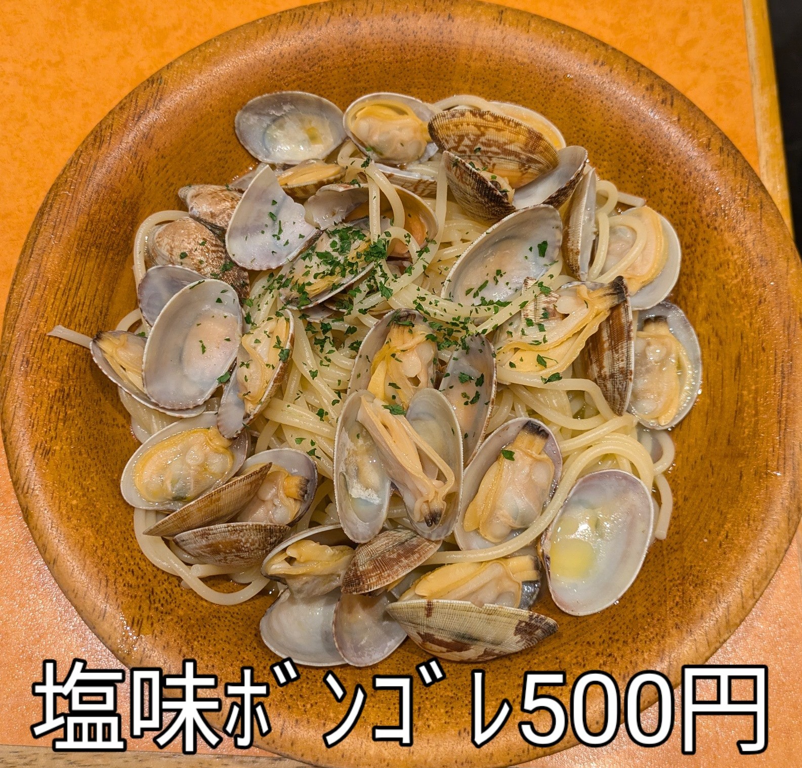 塩味ボンゴレ(500円)を食べながら私だけ赤ワイン🍷を飲みました