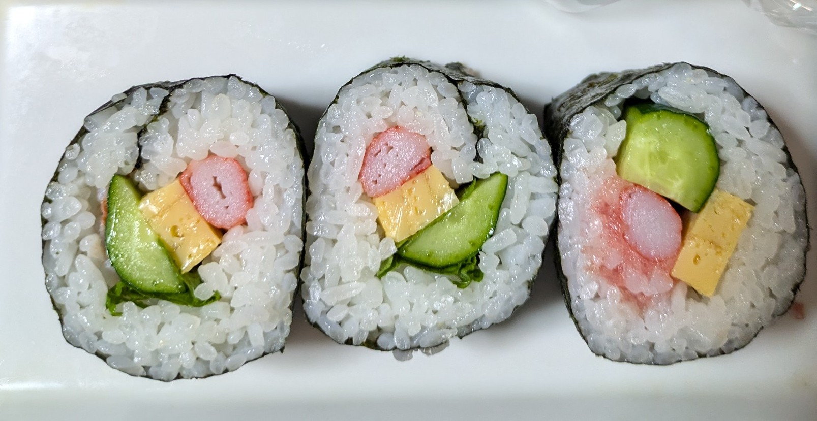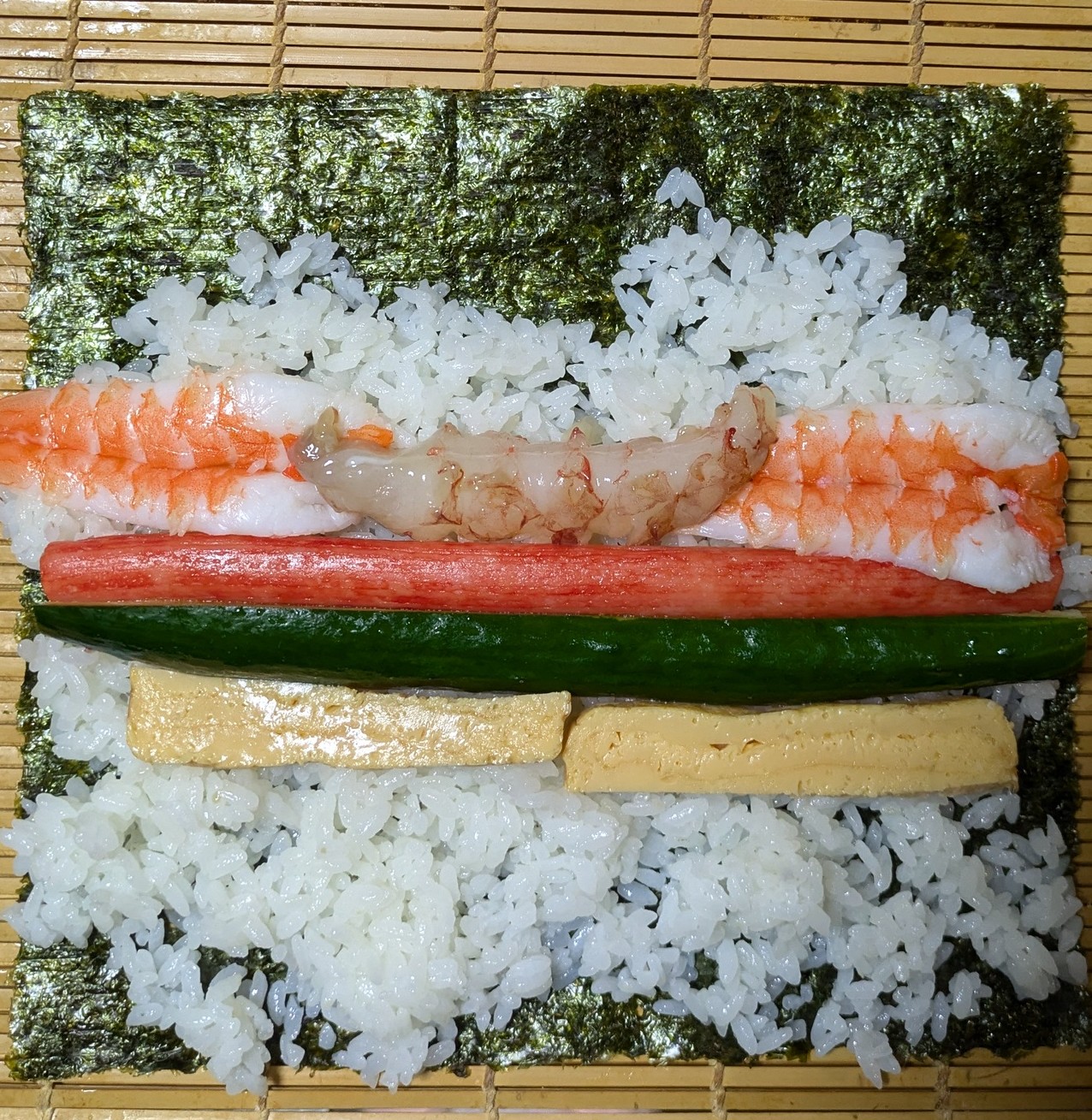 具材がわかる様に恵方巻きをカットして並べました 綺麗に巻けました