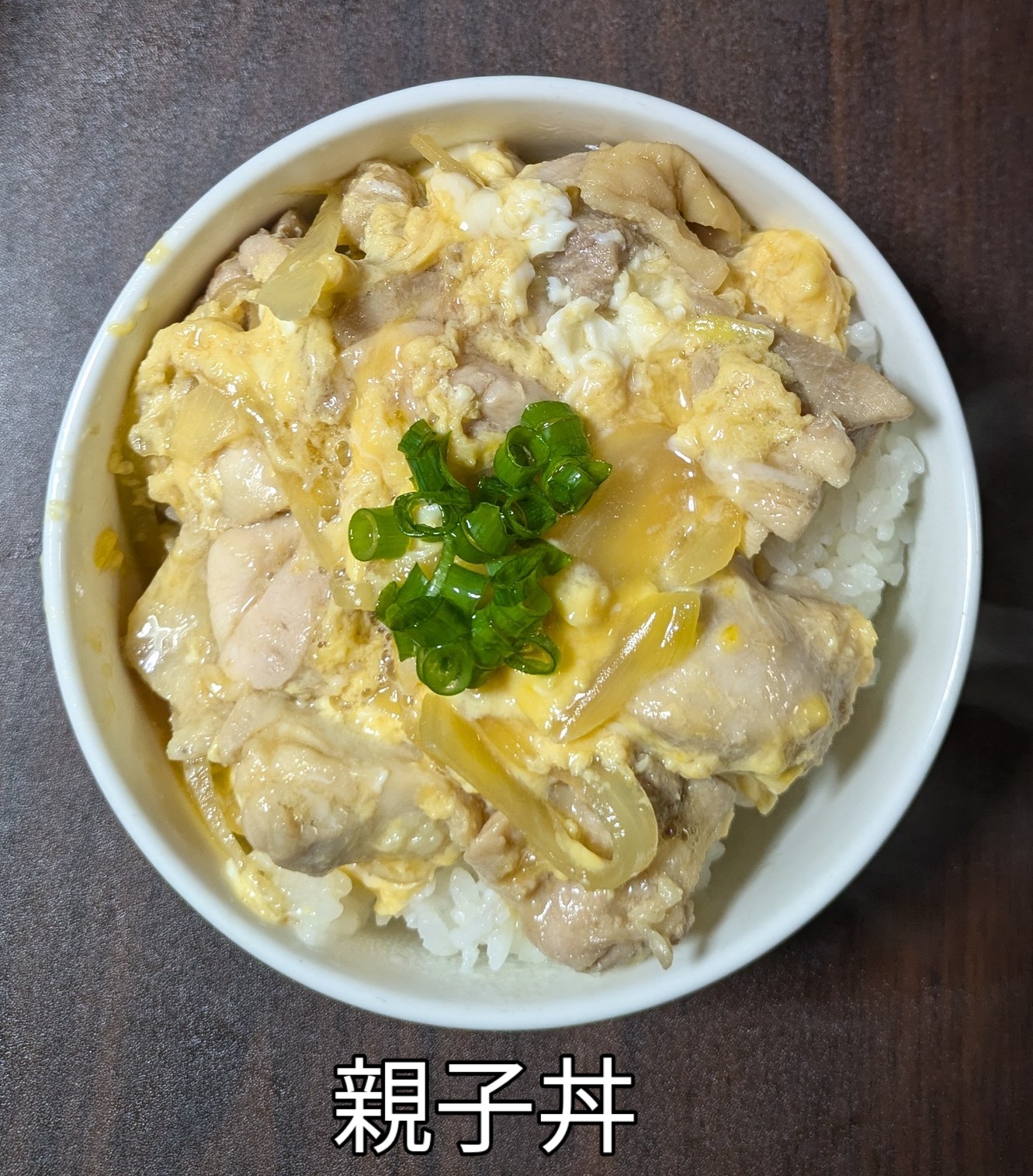 男料理(昼食)ミニ親子丼   彩りに万能ねぎを刻んでのせました