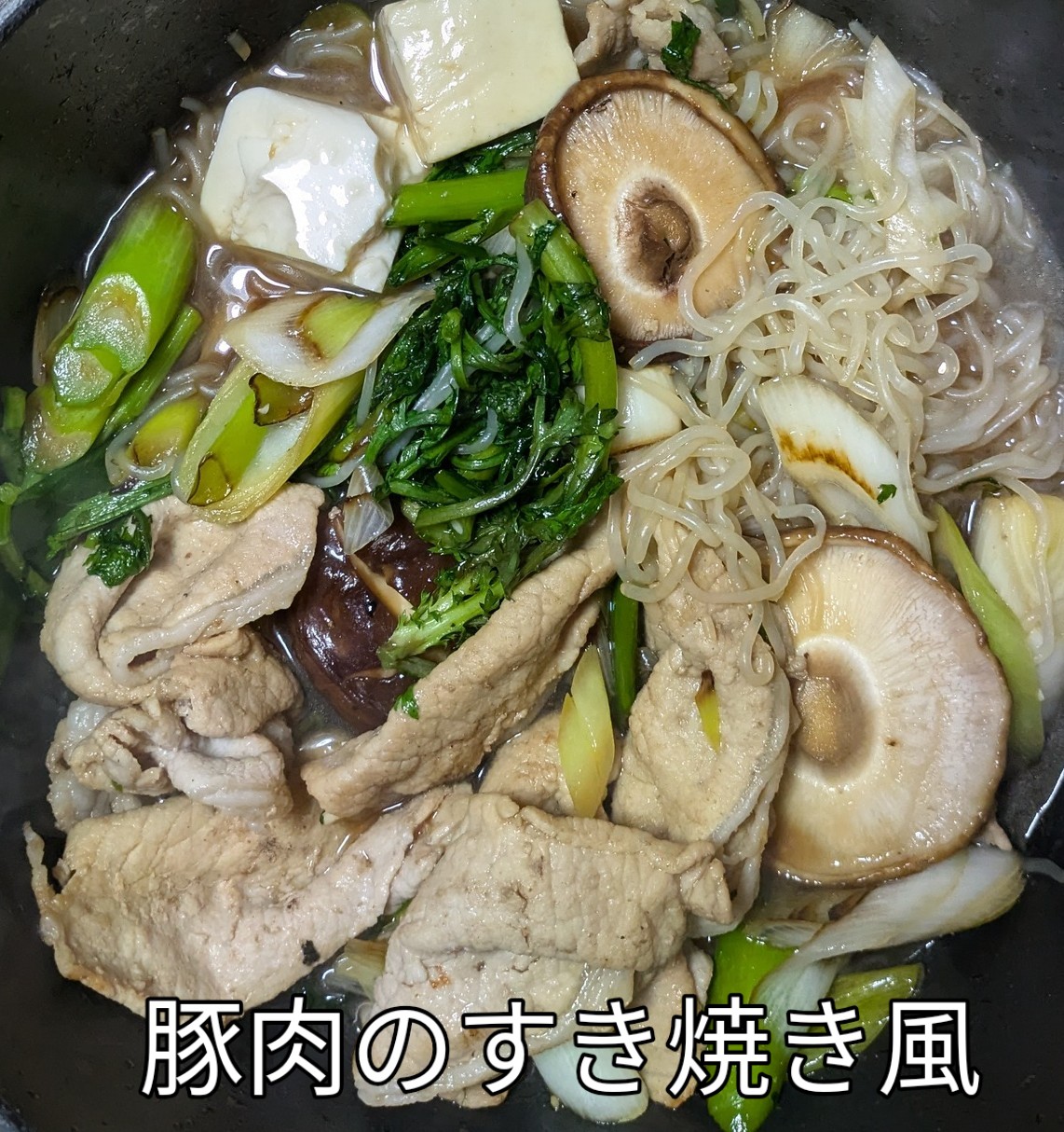 男料理(夕食)自宅にある材料で 豚肉を使いすき焼き風にしました