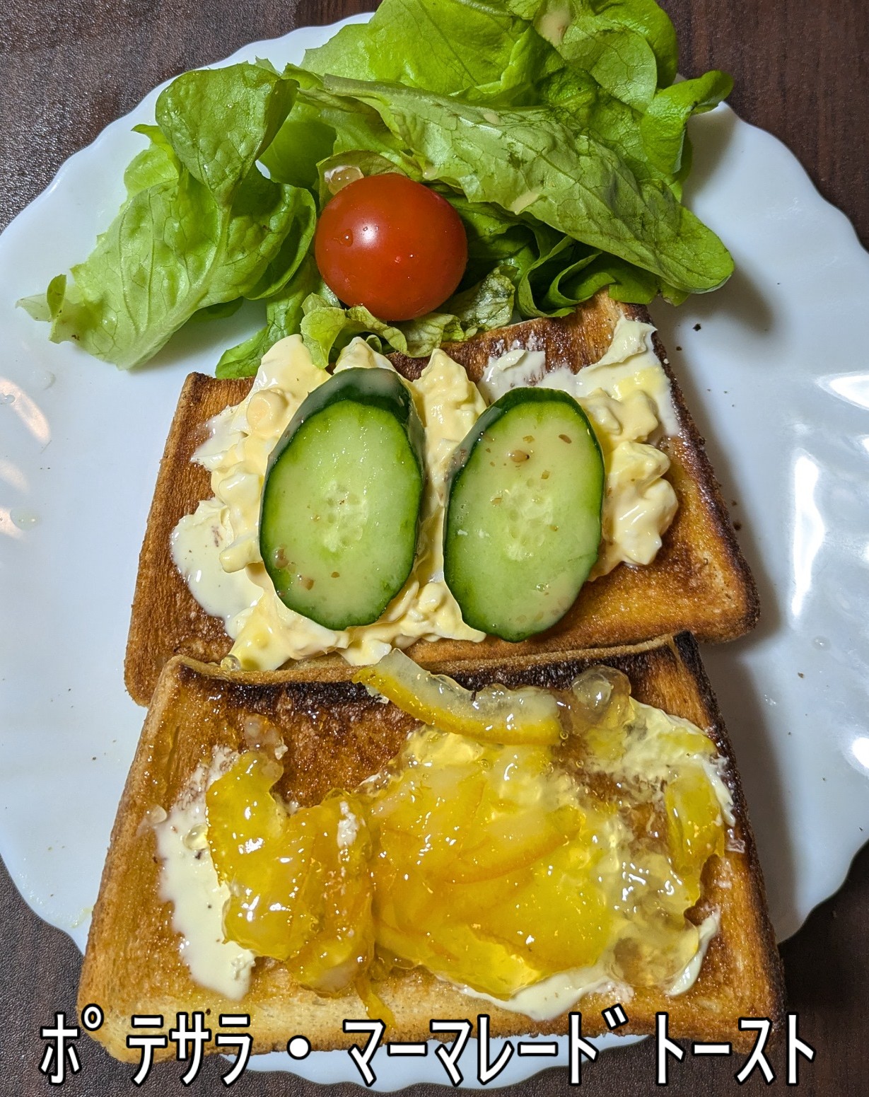 男料理(モーニング)ポテサラ・マーマレードのトースト  サラダ