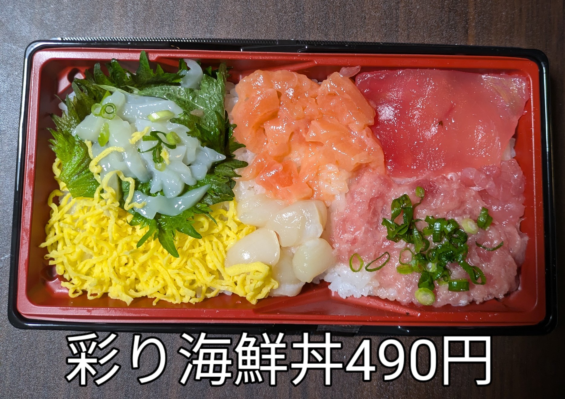 介護が忙しいので スーパーの彩り海鮮丼をランチで食べました