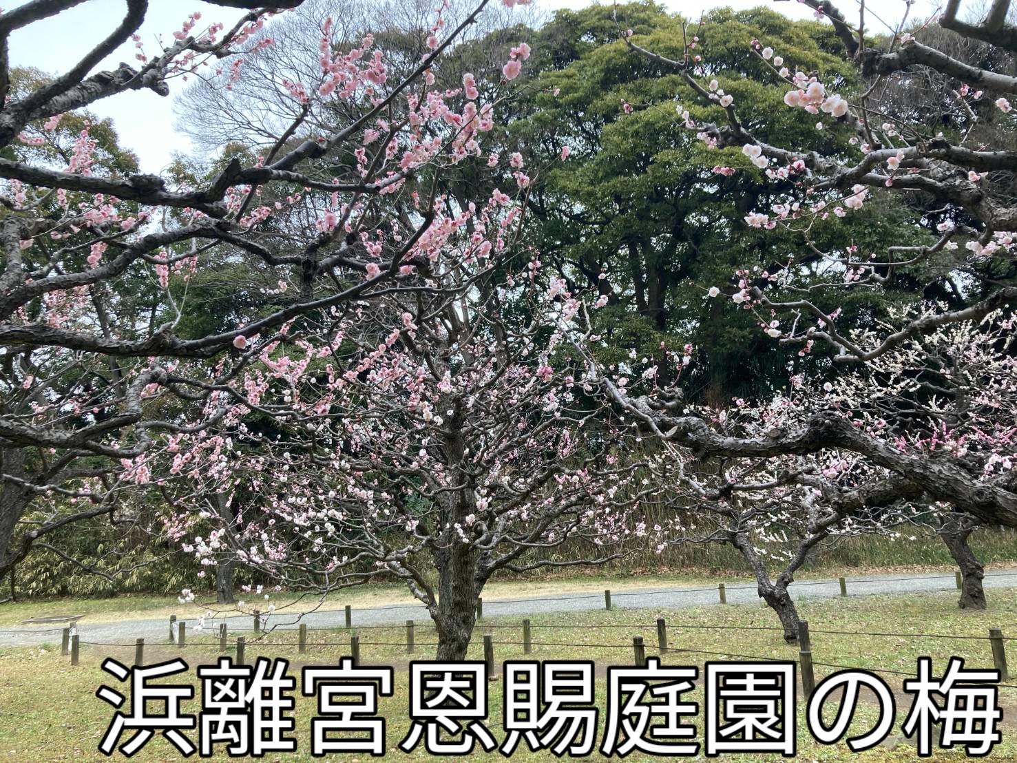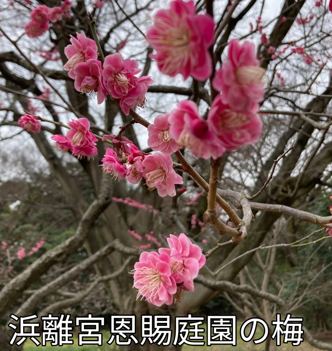 浜離宮恩賜庭園の梅園に咲いた紅梅が鮮やかでとっても綺麗です