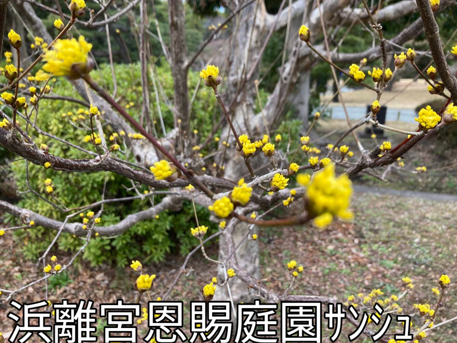 浜離宮恩賜庭園の庭園にサンシュの花が咲いていました