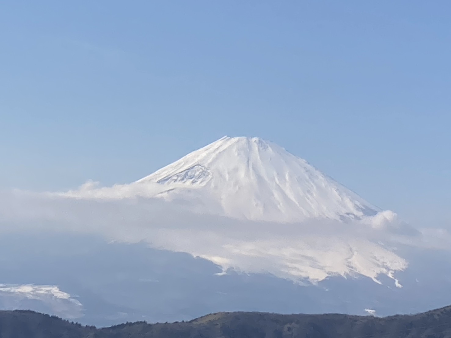 大涌谷の駐車場から真っ白な富士山が綺麗に見えました