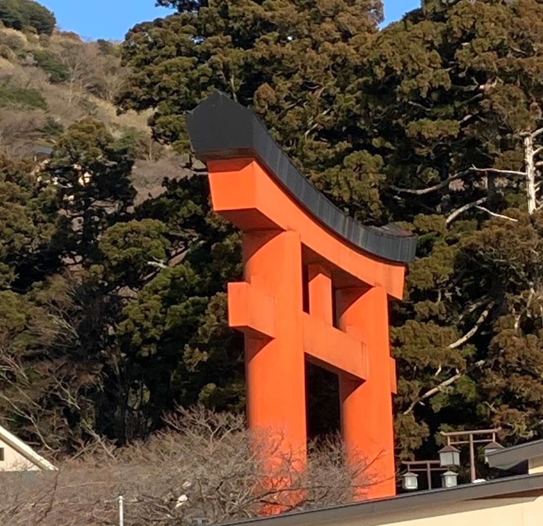 箱根神社の大きなオレンジ色の鳥居を⛩️アップ撮影しました