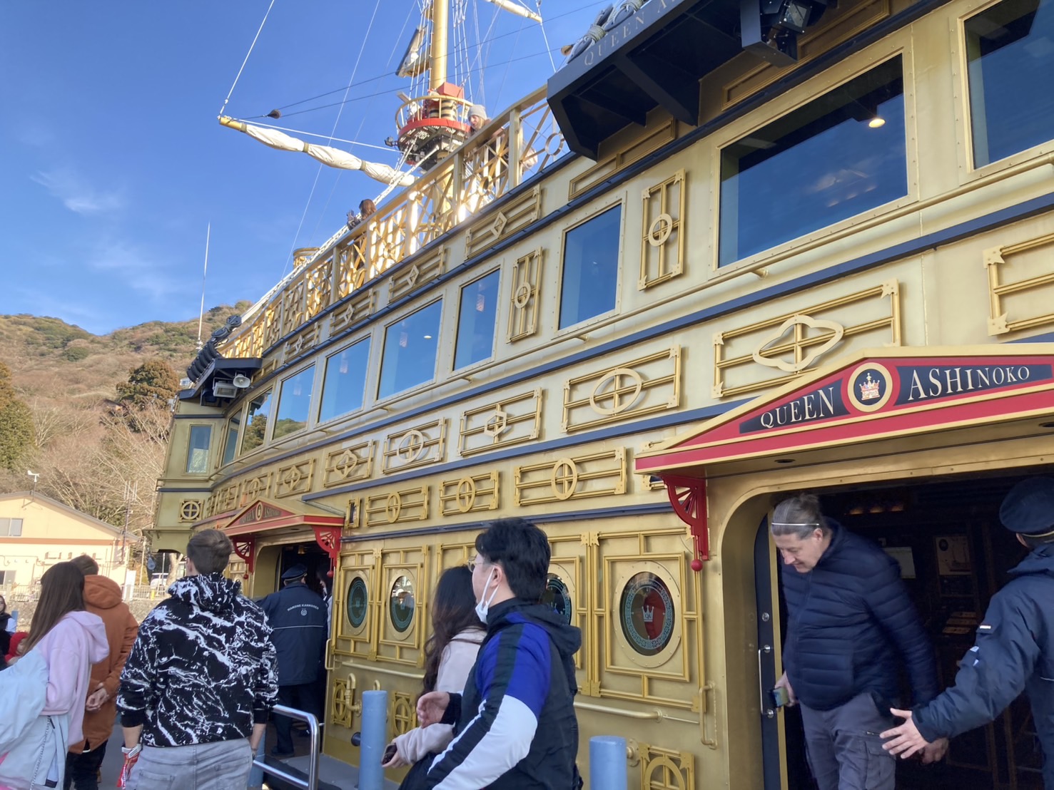 芦ノ湖で海賊船に乗りました  外国人の観光客が多いです