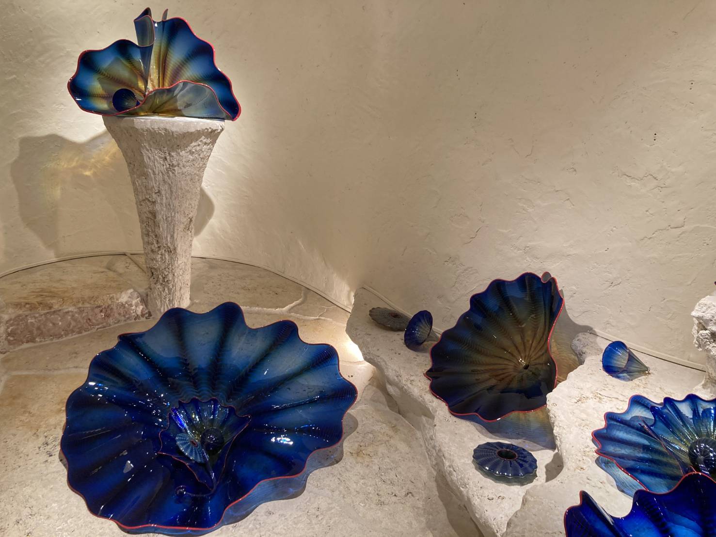 ブルー色の皿や花瓶の作品    Sさんがスマホで撮影