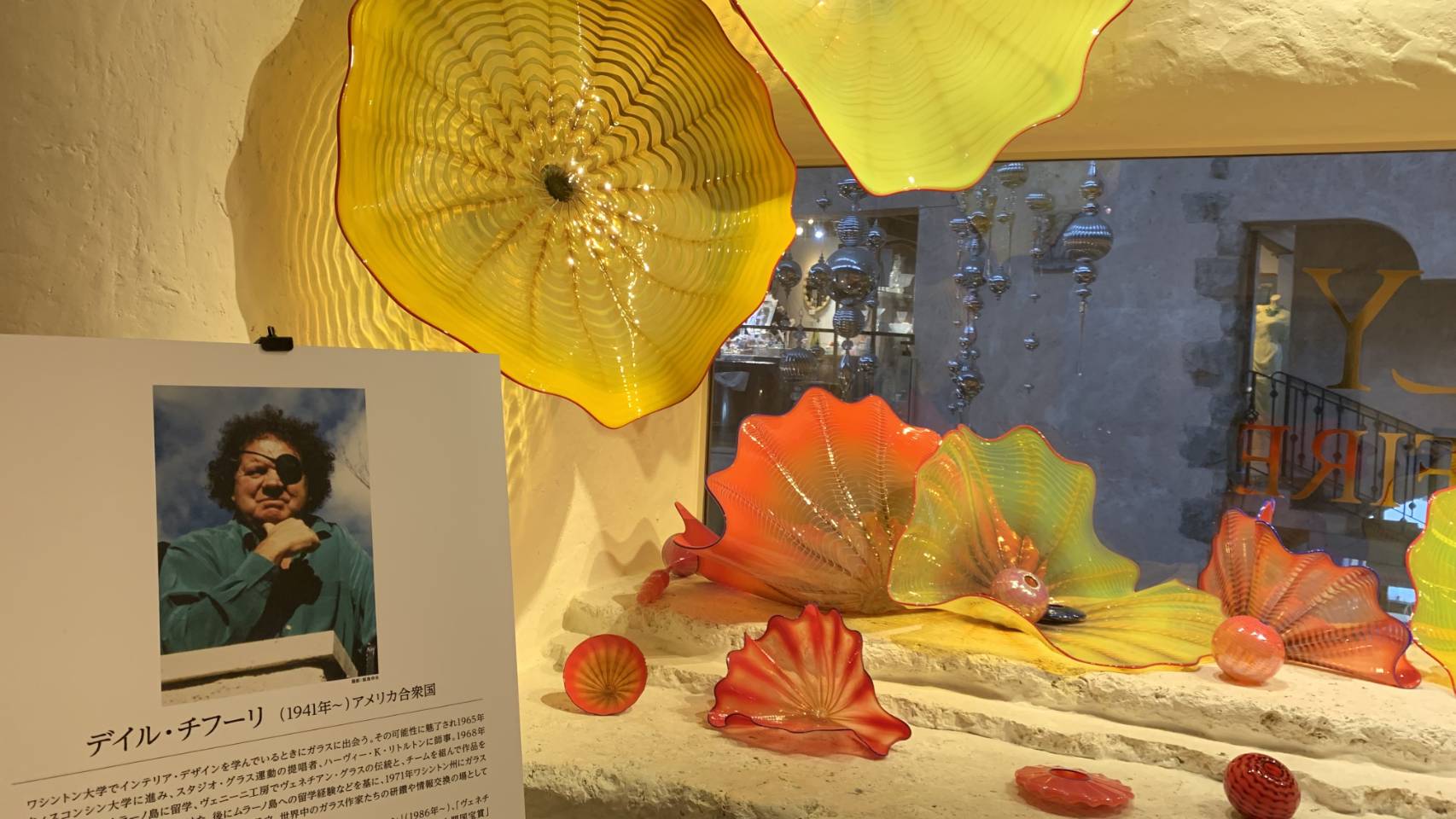 オレンジ色やイエローのガラスの作品     Sさんがスマホで撮影