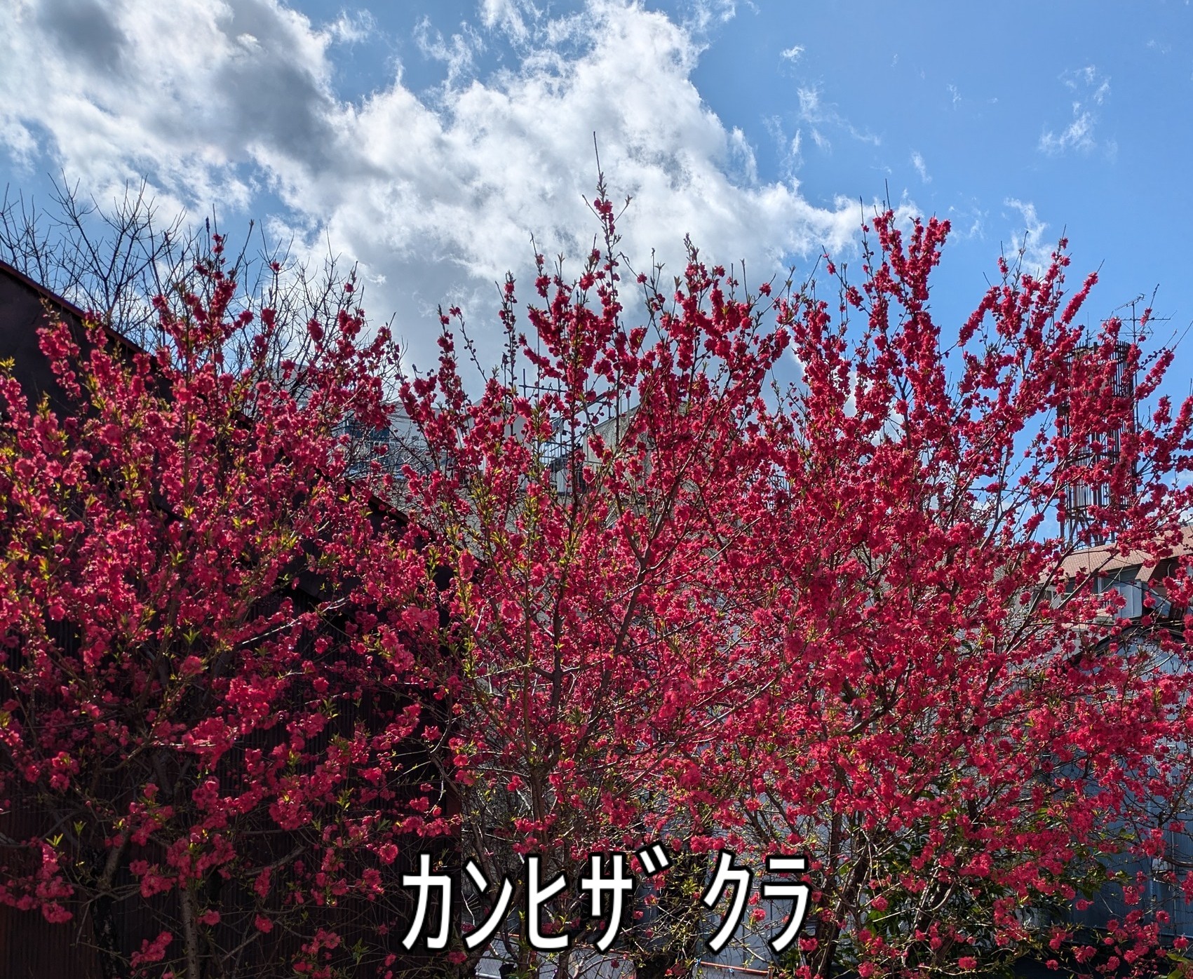 京王線千歳烏山駅ホームからカンヒザクラが満開で綺麗に見えました