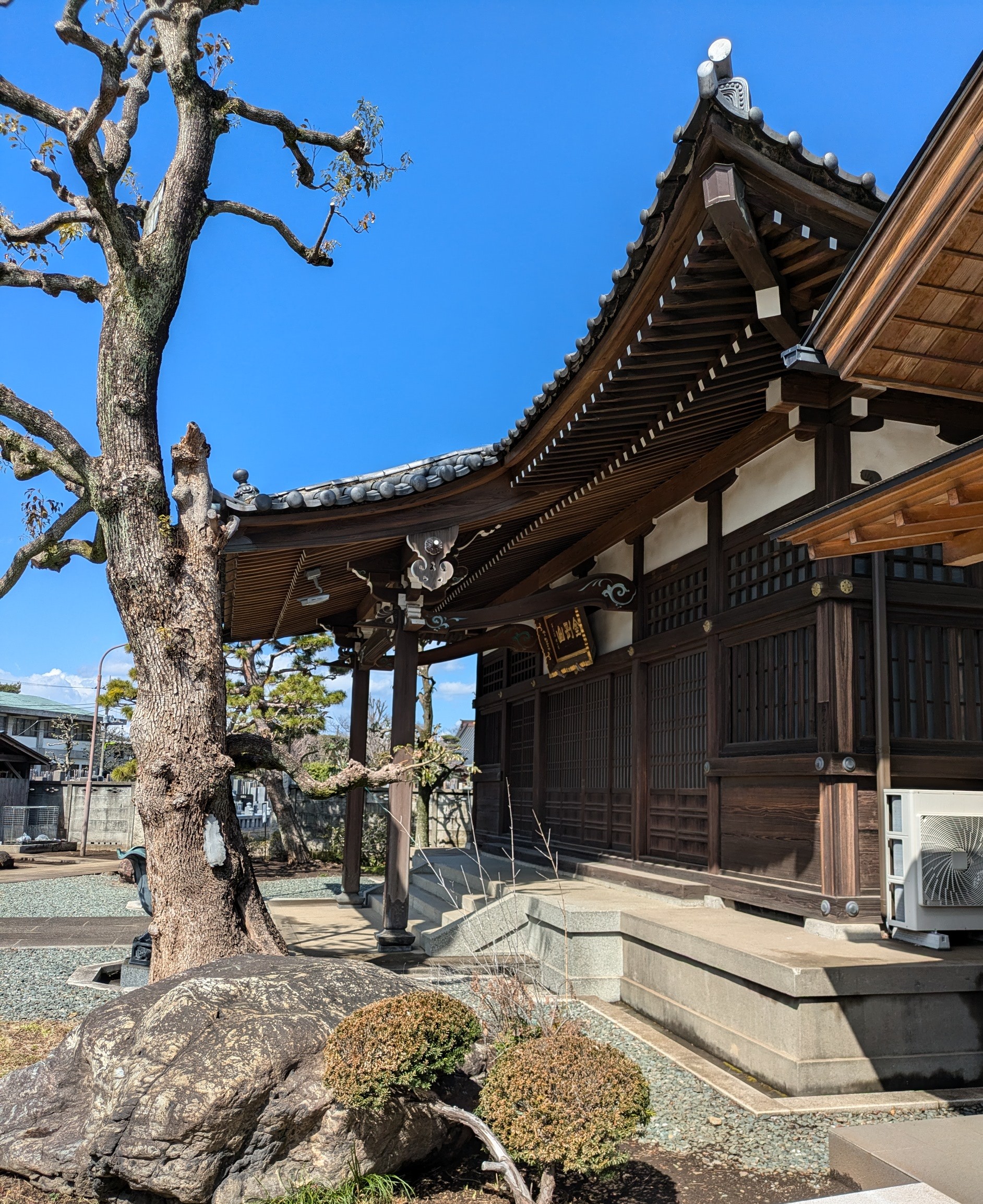多門院本殿を正面右側から撮影しました  奥に墓地があります