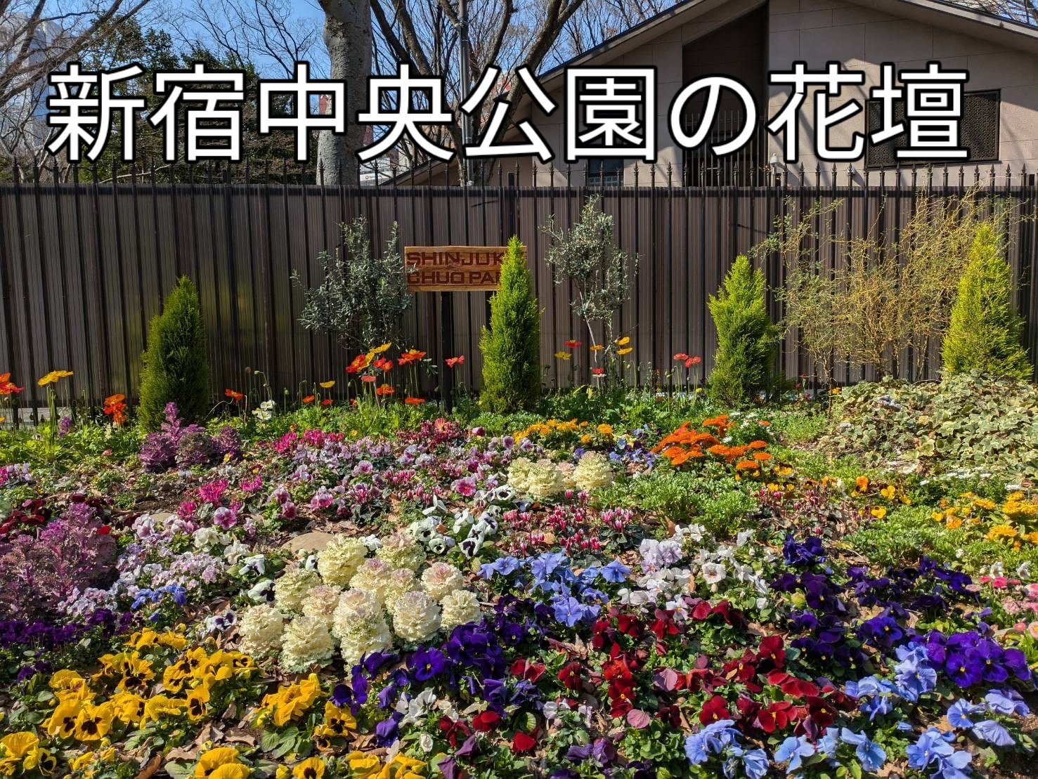 自宅から徒歩3分の新宿中央公園の花壇は春爛漫でたくさんの花が