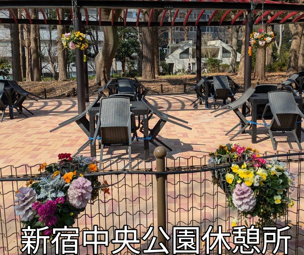 花壇の近くには 休憩や食事が出来る休憩所がありお花見が出来ます