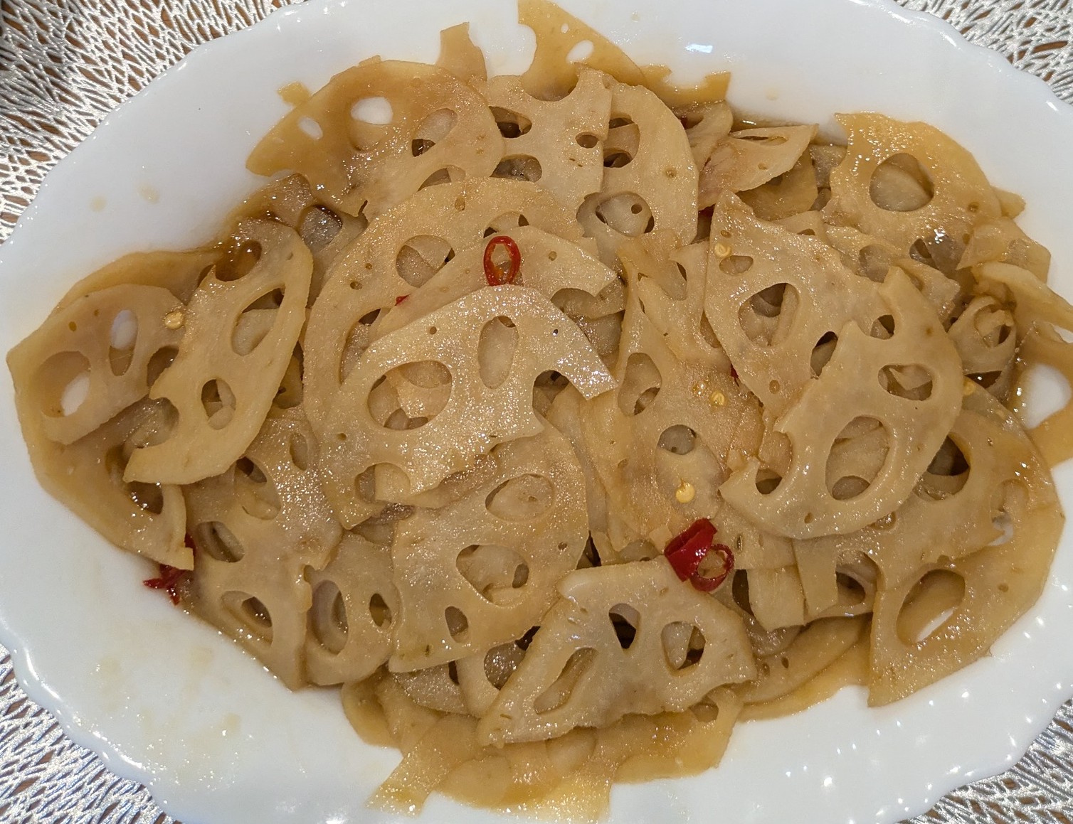 たくさんの野菜や具材のサラダとハスのきんぴらが美味しかったです