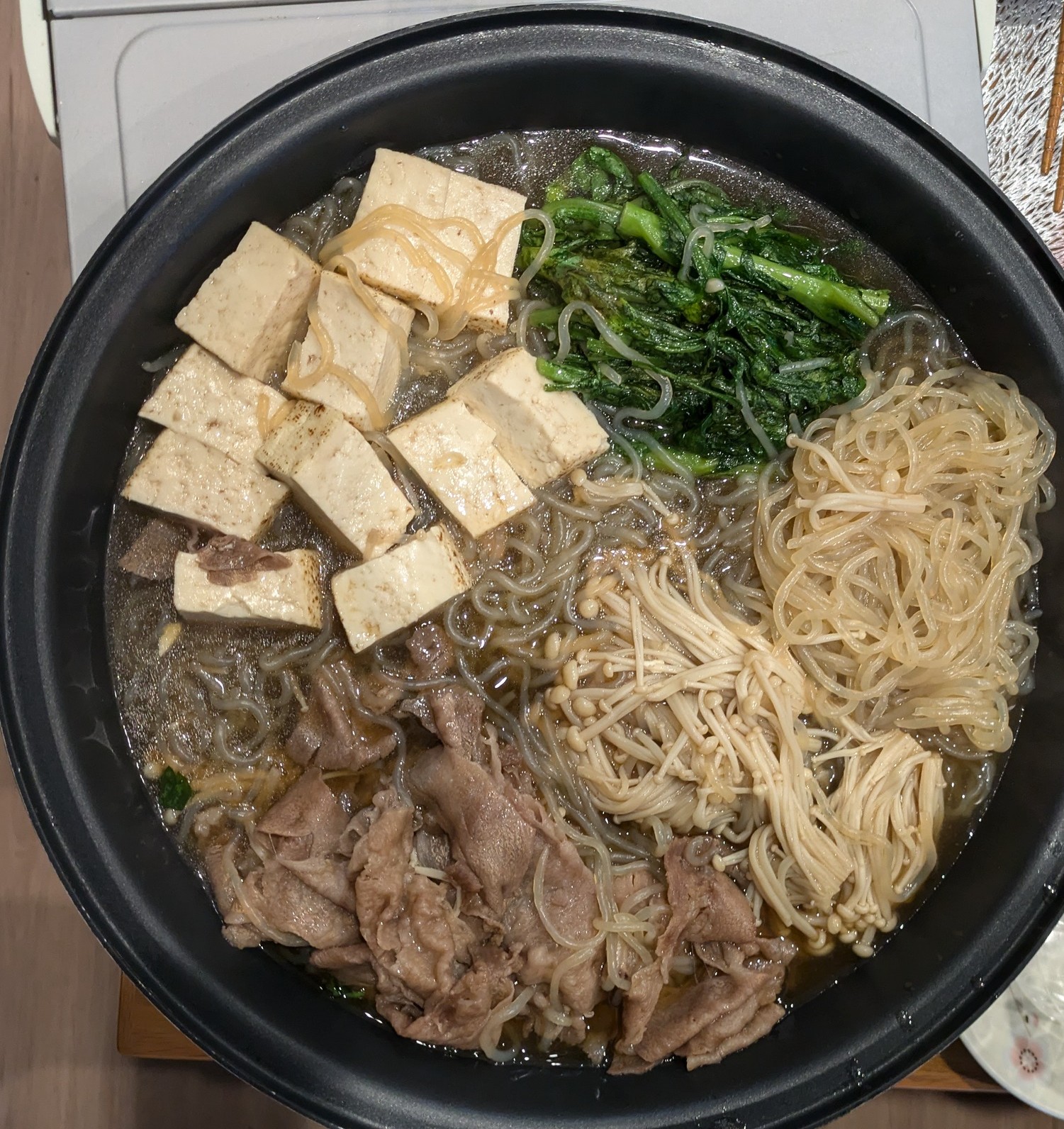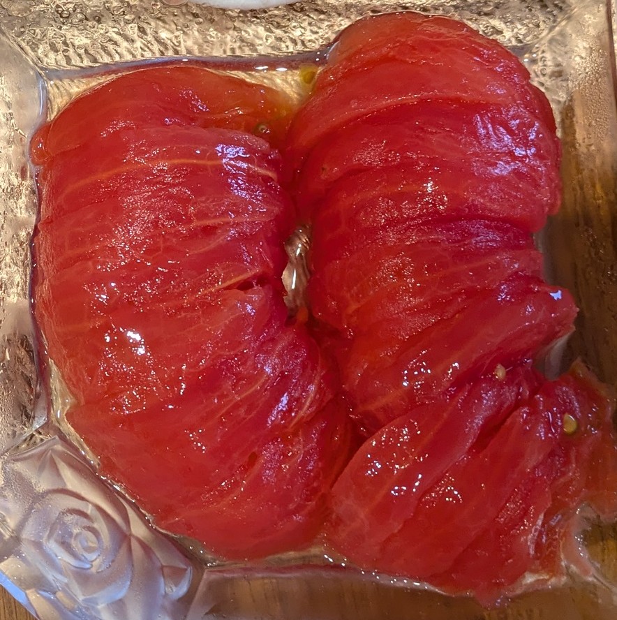 牛肉が美味いすき焼き  甘い塩味の冷やしトマト  たくさんの野菜の煮物