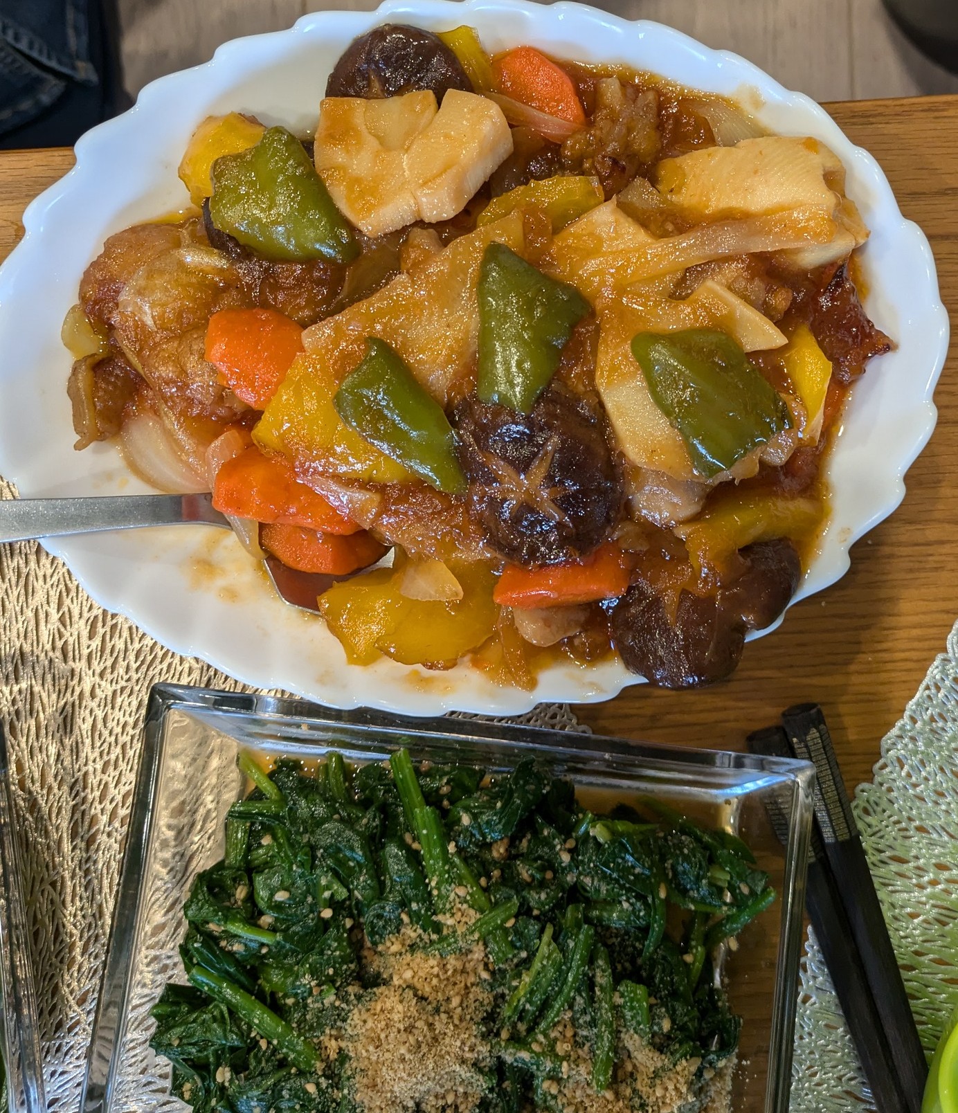 酢豚とほうれん草の胡麻和え   酢豚がとっても美味しかったです