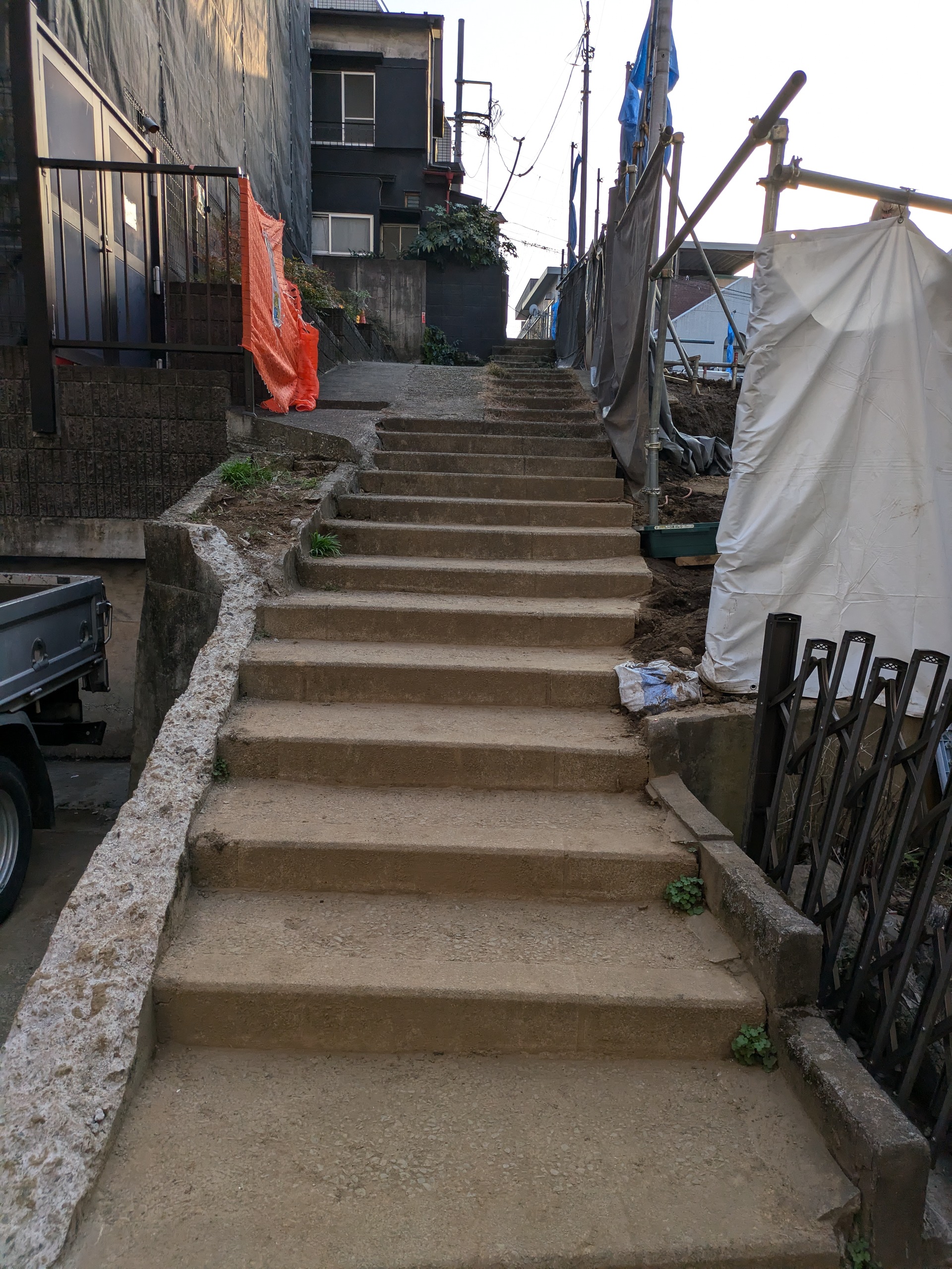料亭等から十二社の池に行く階段(上)料亭の名残の建物(下)昔は