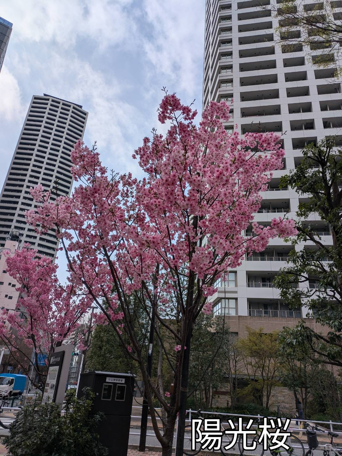 現在は60階建ての高層マンションがたくさん建ちました 陽光桜が咲く