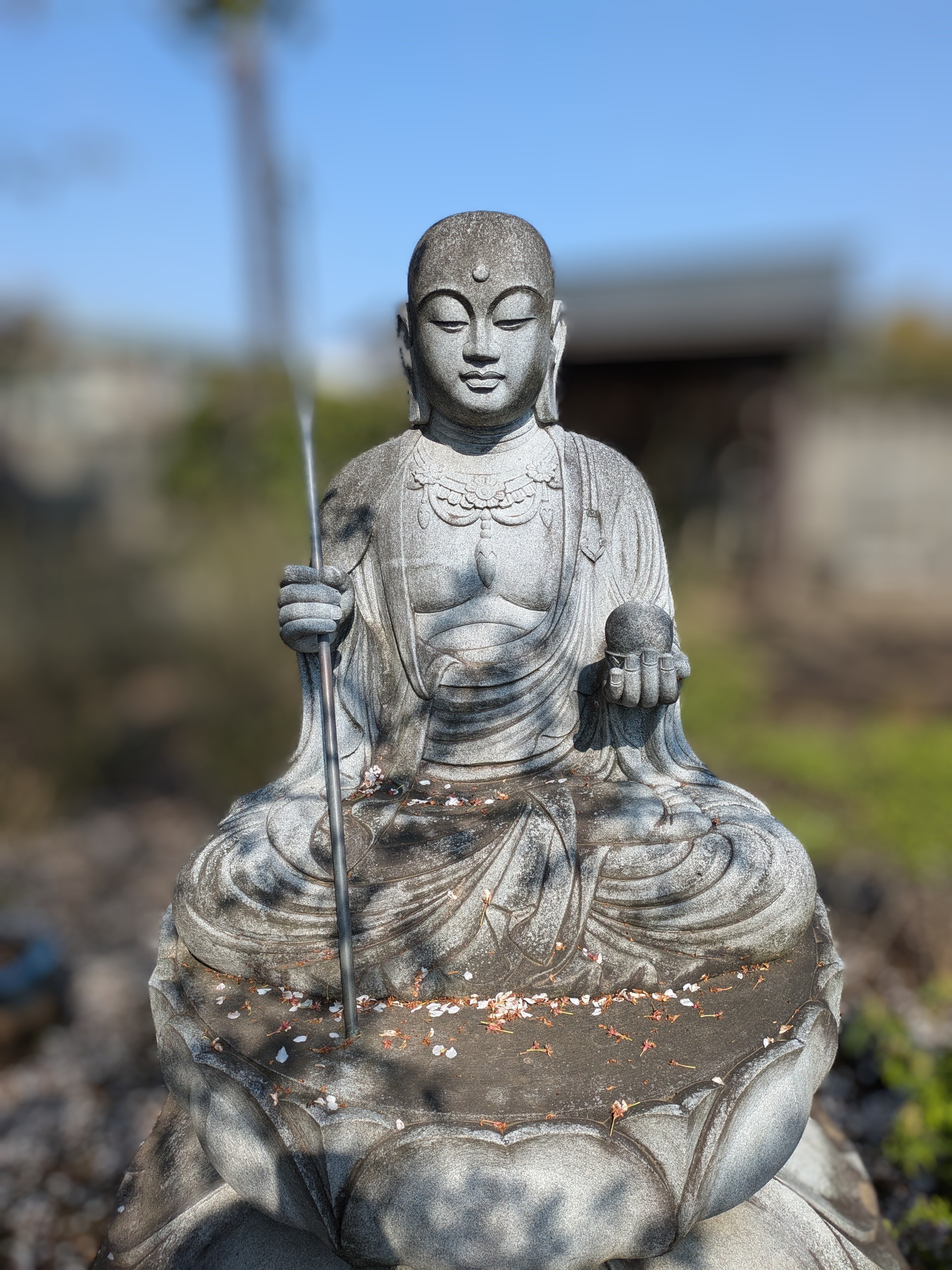 お地蔵様にも桜の花びらがたくさん落ちていました