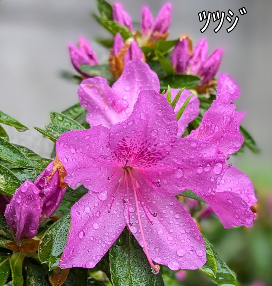 雨の雫💧がついた しっとりとした赤いツツジをアップ撮影しました