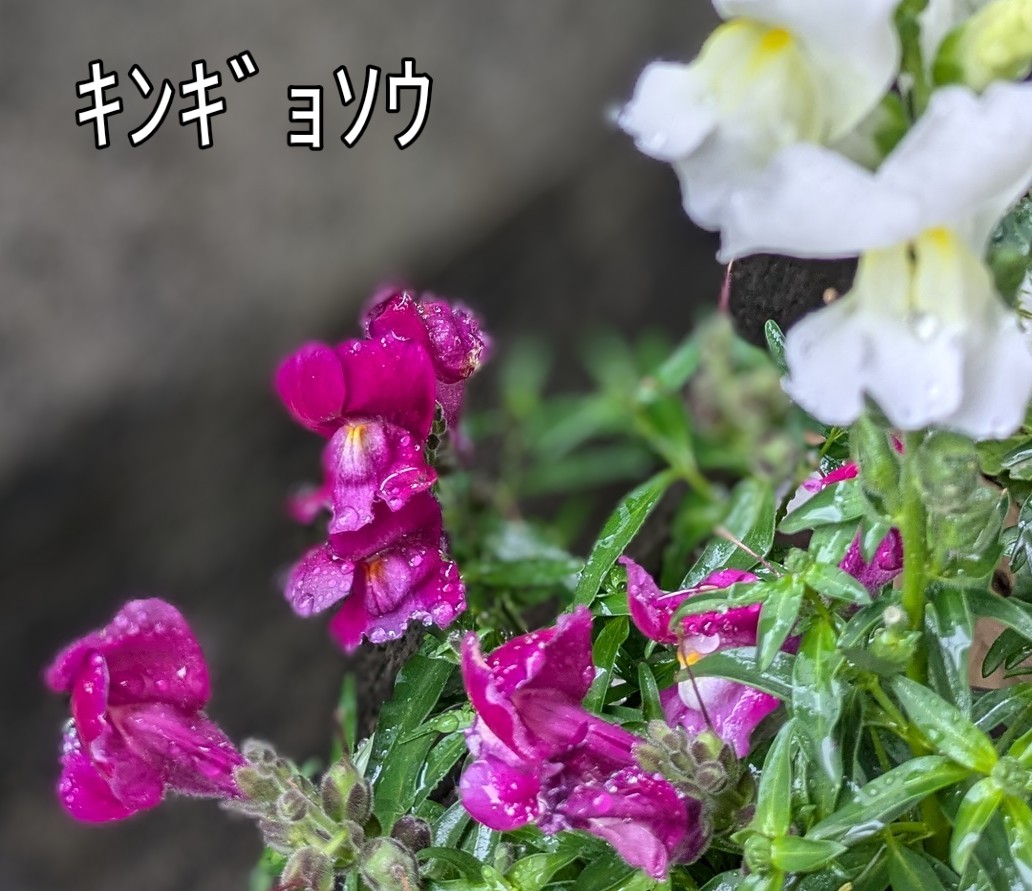 自宅の玄関に飾られた 赤と白色のキンギョソウ