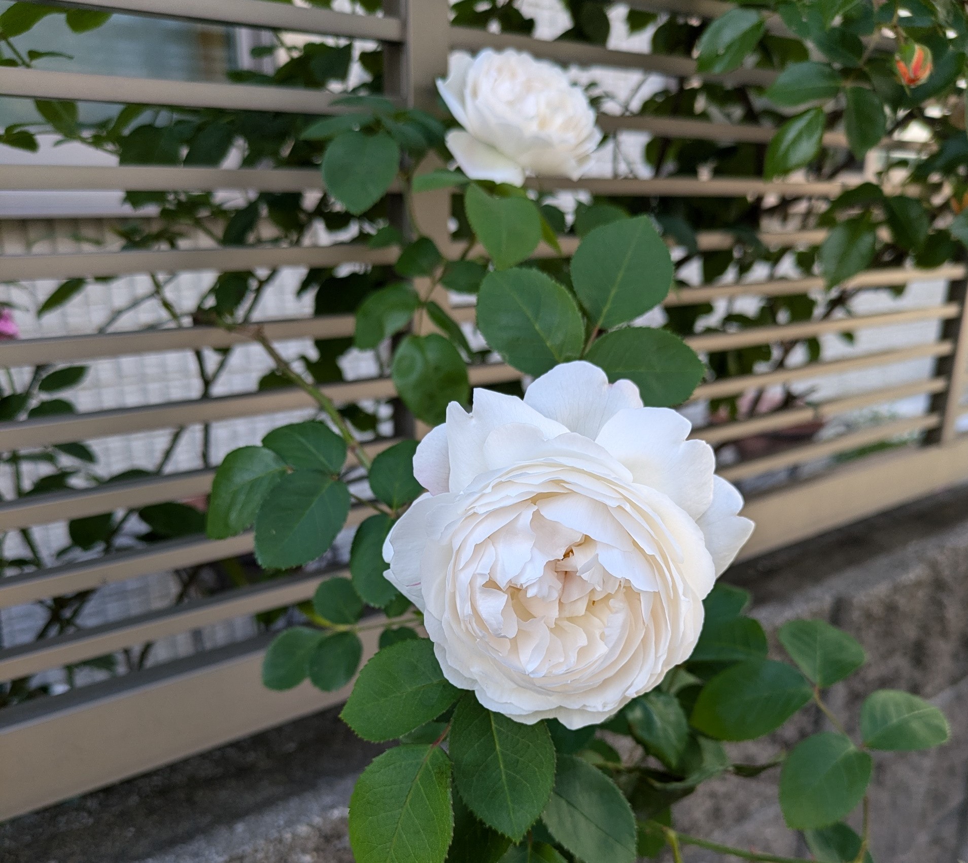 ウィンチェスター・カテドナル 幾重にも重なる淡いピンク色の花びらが綺麗  自宅から近くの薔薇好きな家のフェンスに咲いていました