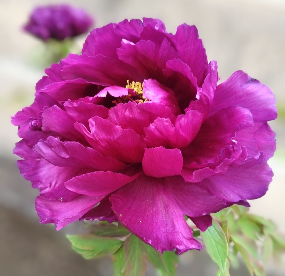濃い紫色の牡丹の花が鮮やかで綺麗です 私が背景をぼかしました