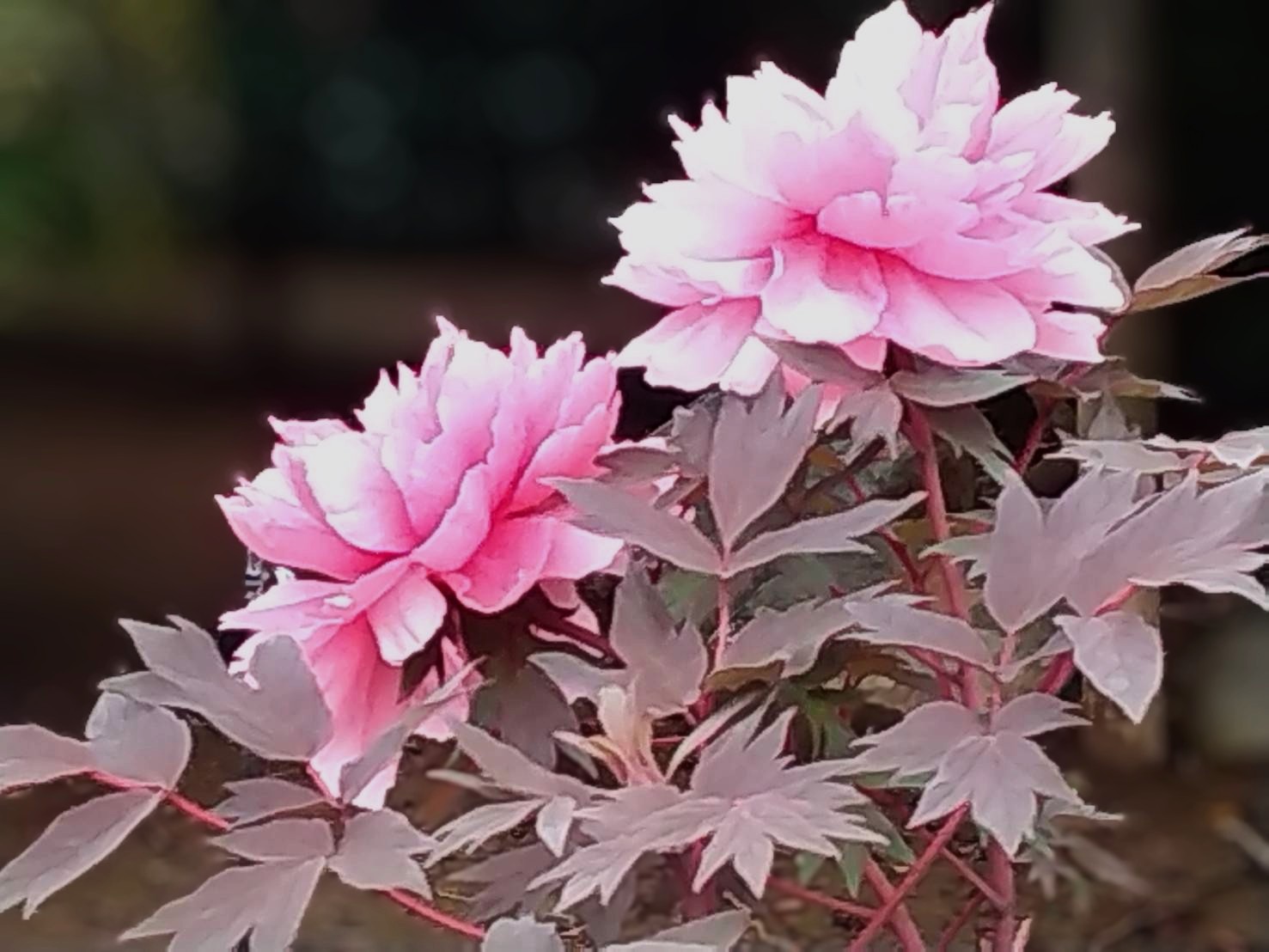 ピンク色の牡丹の背景を暗くして牡丹の花を浮かび上がらせました