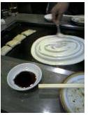xingxingの同僚で仲良くさせて頂いている方が九州は博多に転勤ということでさよなら会をした。東京名物を食べに行こう!ということになったんだけど、はて、東京名物と言われると難しい。単純な思考回路の私としては「すし」OR「もんじゃ」しか思いつかないのだ。で、お魚なんかは九州の方がさぞうまかろうという話になり、月島にもんじゃを食べに行くことにした。もんじゃ・・・東京に出てきて初めて食べたときは「え?これって何かの作りかけじゃあ」とその見た目にどんびきしたものです。だって、固体じゃないんだもん。そして汚い話ですがしばらくの間は駅の構内とかでゲ●を見かけると「あ、もんじゃ焼きみたい・・・」と素朴に思っておりました。しかし、何回か食べるとすっかり慣れちゃっておいしく感じるのよね。ということで今回もデザートのあんこ巻きまでばっちり食しました。(写真はあんこ巻き)とても素敵ないい方なので離れるのがとても寂しいのれすが、彼の前途を祝って気持ちよく送り出したいと心から思いました。ぜひ博多美人をお嫁さんにして、そのお嫁さんと私がお友達になれるようにセッティングしてくださいまし。(下心みえみえ)