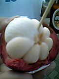 写真はマンゴスチン。果物の女王様という名称も。甘酸っぱくて、おいしいの~。成城石井とかでたまに売ってます。