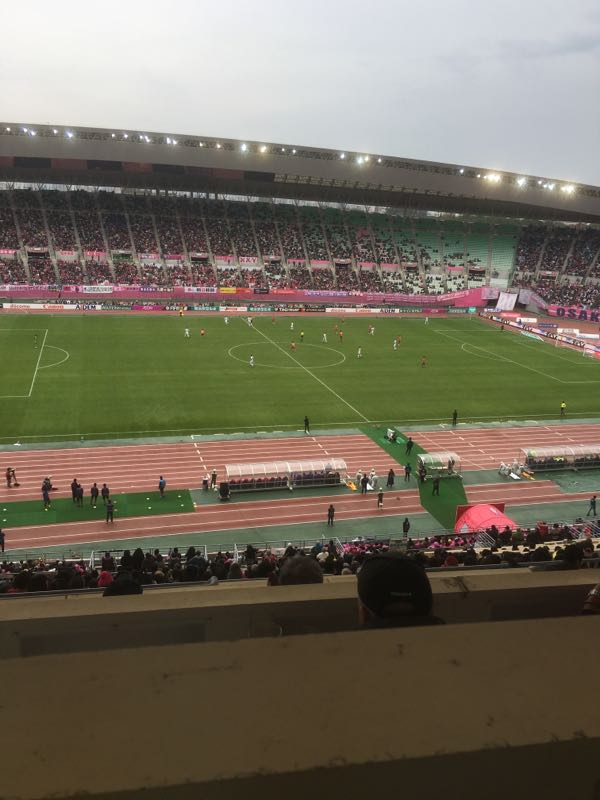 Jリーグ第33節 セレッソ大阪vsヴィッセル神戸の試合を観戦。3-1でセレッソ大阪の勝利。以下、試合内容をレポートします。(長文で失礼します。 【試合の流れ】 (前半) ヴィッセルは序盤10分に、左サイドからの藤田のロングスローイングに渡部がヘッドで後ろにすらせて最後は渡邉千真が右足で押し込んで、ヴィッセルが1-0と先制。 その後はヴィッセルが固いディフェンスをベースに、ポドルスキー、ニウトン、藤田を中心に縦パスを中心としたカウンターを仕掛けるが、セレッソも左右のスペースを使いながら、杉本、柿谷、清武、ソウザの細かいパス回しからチャンスをうかがう展開になる。30分ごろから徐々にセレッソペースに傾き、40分にフリーでボールを受けた松田からの右からのセンタリングに杉本がヘッドで合わせて、セレッソが1-1に追いついて前半終了。 (後半) 後半開始から、セレッソが清武、柿谷、丸橋らが左サイドのスペースを有効に使って度々チャンスを作って試合を優位に進めて、66分に丸橋からの左CKにヨニッチからヘッドで合わせて、セレッソが2-1と逆転に成功する。 その後、ヴィッセルは大森を投入してポドルスキーとの関係で左サイドを崩しにかかり、さらにハーフナー・マイクを投入して攻撃の基点を作ろうとするが、セレッソのコンパクトなディフェンスにことごとく跳ね返される展開が続き、決定機を作れない。 逆にセレッソは、後半85分にカウンターから清武と山村のコンビで左サイドを崩してフリーの水沼に渡る決定機を作り、その直後に丸橋が左サイドをえぐって上げたアーリークロスに杉本がボレーで合わせてセレッソが3-1とリードを広げて終了。 【戦術】 セレッソはDFとボランチからのビルドアップから、左右のスペースを使いながら、杉本、柿谷、清武、水沼、ソウザが細かいパス回しでリズムを作って崩していく戦術。 ヴィッセルはポドルスキー、ニウトン、藤田を軸に縦パスから両サイドで基点を作って、カウンターを交えながら早い攻めで崩していく戦術。 【システム】 (セレッソ大阪)4-4-2右から) GK キム・ジンヒョン DF 松田、 ヨニッチ(90分山下)、木本、丸橋 ボランチ 山村、ソウザ(92分 福満) 3シャドー 水沼、清武(90分 秋山) 1トップ 杉本、柿谷 (守備時も4-4-2) (ヴィッセル神戸)4-4-2(右から) GK 徳重 DF 藤谷、岩波、渡部、三原(80分 松下) ボランチ ニウトン、藤田 MF 小川(75分 ハーフナー・マイク)、渡邉 FW ポドルスキー、大槻(67分 大森) (守備時も4-4-2) 【勝負の分かれ目】 セレッソが左右のスペースを有効に使えたこととコンパクトなディフェンスでポドルスキーらに仕事をさせなかったこと。 【まとめ】 セレッソは左右のスペースを有効に使えて、セレッソらしい細かいパス回しでヴィッセルディフェンスを崩すことがてきた。今シーズンの好調さがそのまま表れたホーム最終戦を飾るにふさわしい試合。 ヴィッセルはよくも悪くもポドルスキー頼りになってしまう傾向にある。ポドルスキーがゲームメイクに奔走している中、他の選手との効果的な連動性がないために、決定機を作れない。ポドルスキーにゴールに直結させるようなチーム作りが来シーズンには必要である。