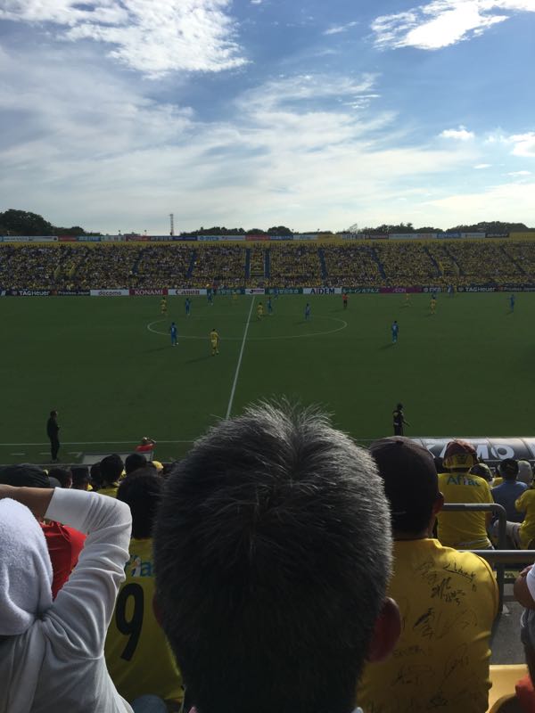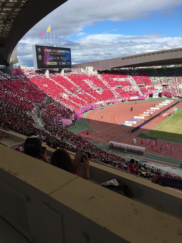 J1第29節 セレッソ大阪vsガンバ大阪の試合をヤンマースタジアムで観戦。1ー0でガンバ大阪の勝利。以下、試合内容をレポートします。(長文で失礼します。) セレッソゴール裏 ガンバゴール裏 【戦術】ガンバは遠藤、今野を中心に、DFのビルドアップから細かいパス回しで崩していき、アデミウソンの決定力を活かしていく戦術。守備は4-4-2のブロックを敷きながら、セレッソDFラインのパスの出所をチェックしていく。 セレッソはDFとボランチのビルドアップから、両サイドバックが高い位置で起点となって清武、ソウザが中心となって崩していく戦術。守備は5-4-1のブロックを敷いて対応する 。 【試合の流れ】(前半) 前半はガンバが遠藤、今野を中心とした細かいパス回しを展開して試合を優位に進めていく。 5分に左スペースから遠藤のスルーパスを受けた渡邉のシュートがキム・ジンヒョンに阻まれて、さらに22分にはカウンターからセンターエリアでのアデミウソンのポストプレーを利用して裏のスペースを突いた倉田がそのままセレッソDFを振り切り、GKと1対1になり右足でシュートするも、再度キム・ジンヒョンに阻まれる。 ガンバは攻守とも数的優位を作って、攻撃ではテンポのいいパス交換でセレッソのDFラインを下げさせることに成功し、守備面ではセレッソDFからの縦パスを出させないディフェンスをする。 セレッソは山村がガンバディフェンスを厳しいマークに合い、DFラインがなんとか耐えながら、両サイド、特に左サイドのスペースを基点として打開を図る。 38分に左サイドからのこぼれ球から高木の横パスを受けたソウザがミドルシュートが打つが、東口の手を弾いてバーを直撃して、CKを得たものの得点には至らず。 逆に、ガンバは前半終了前の45分に、アデミウソンがオスマルの裏のスペース突いて、倉田からの柔らかいスルーパスに反応して、一瞬前に出るのを躊躇したキム・ジンヒョンの頭上を越す技ありのループシュートを決めて、ガンバが先制して前半終了する。 (後半)後半はセレッソが左右の両サイドウイングバックを基点になり、ソウザや山口からのサイドチェンジを交えた攻撃を展開する一方、ガンバが4-4-2のブロックを敷いて、特にバイタルを含めた中央のスペースを固めてカウンターを狙う展開が続いていく。 セレッソは、53分に高木からの右からのクロスを丸橋が合わせられない場面、76分に高木の右クロスに合わせた清武のヘッドがバーを越す場面や、84分に高木が右から中央へ切り込んだシュートが東口の正面を突く場面があったものの、決定機を作れない。 ガンバは後半の途中から運動量がガタッと落ちながらも、中央を固めたディフェンスを最後まで徹底したことにより、セレッソは最後まで決定機を作れずに、ガンバが1-0でなんとか逃げ切って勝利。【システム】(セレッソ大阪)3-4-2-1(右から)GK キム・ジンヒョンDF 木本(89分 田中裕)、ヨニッチ、オスマルMF 松田(13分 高木)、 山口、ソウザ、丸橋2シャドー 水沼(70分 澤上)、清武FW 山村(守備時は5-4-1) (ガンバ大阪)4-4-2(右から)GK 東口DF オ・ジェソク、三浦、ファビオ、藤春(89分 高)ボランチ 遠藤、今野 MF 小野瀬、倉田(75分 米倉)FW アデミウソン(80分 一美)、渡邉(守備時も4-4-2) 【まとめ】ガンバは前半、遠藤やアデミウソンが活性化して中盤を支配できたとともに、後半はディフェンスでは中央を固めたディフェンスに徹してセレッソに危険なスペースを与えなかった。この勝利は残留争いにおいて大きい。 セレッソは前半の失点が最後まで響いた。 ソウザや山口が左右のサイドチェンジを多用してなんとかガンバディフェンスをこじ開けようとしたが、山村が抑えられてしまったこともあり、決定機を作らなかった。 現時点でのチームの勢いがそのまま出た感あり。