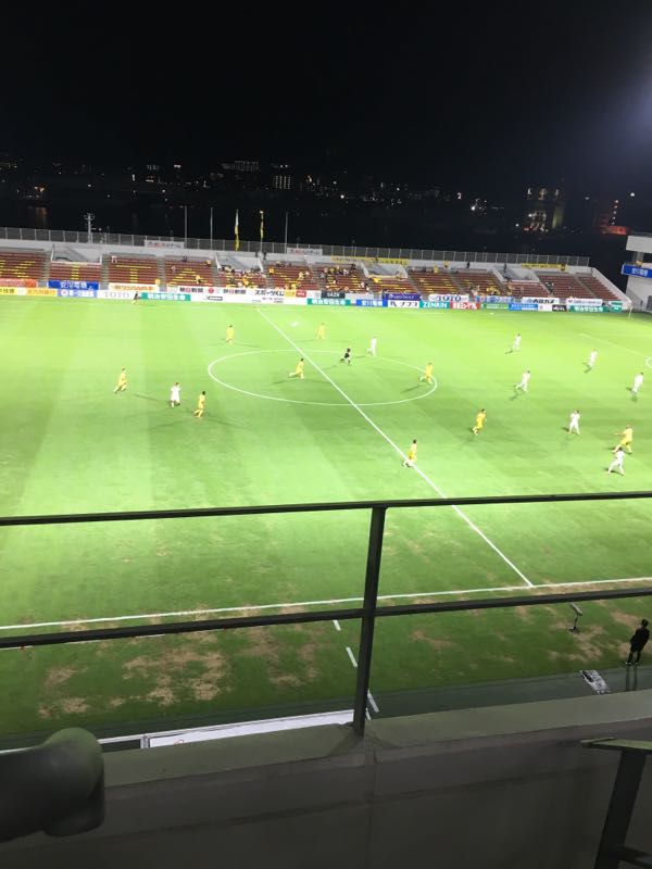 J3第22節 ギラヴァンツ北九州vsカターレ富山戦をミクスタで観戦しました。ギラヴァンツが2-1で逆転勝利。以下、レポートします。(長文で失礼します。) 【戦術】 ギラヴァンツはフェホと前田の2トップへの縦パスを基点に、中盤が積極的に絡んで攻める戦術。 カターレは左右のウイングバックを基点に3トップとボランチがパス交換して攻める戦術。 【試合の流れ】 (前半) 序盤からカターレが左サイドの新井、前嶋、才藤のコンビネーションが再三ギラヴァンツディフェンスを崩していく。 17分に、椎名からのパスを受けた才のシュートがGK高橋の正面を突くなど、枠内シュートは少ないながら、試合を優位に進める。 一方、ギラヴァンツはフェホがカターレDFの厳しいチェックによりポストプレーでの基点にならず、また、井上と川島とポジションチェンジをして局面を打開しようとするも、カターレに押し込まれる展開となる。終了間際に左サイドからチャンスを作った浦田からのグラウンダーのクロスにフェホと井上が飛び込むも合わずに、前半は0-0で終了。 (後半) 後半もカターレが左右のサイドを基点に試合を優位に進め、56分に差波からの展開に進藤が上げた右からのクロスに才藤が押し込んで、カターレが1-0と先制する。 しかし、ギラヴァンツがすぐさま反撃に出て、60分に右サイドを基点に、野口と井上のコンビネーションから井上の左足からのクロスにフェホに合わなかったが、そのままゴールに入って、ギラヴァンツが1-1に追いつく。 その後はカターレが左右のクロスを多用してギラヴァンツのラインを下げさせることに成功して、65分には差波からのクロスに才藤から受けた新井のシュートがポストをたたき、72分には前嶋から才藤とのワンツーから抜け出してGKと1対1となり放ったシュートが高橋の正面を突くなど、再度優位に立った。 しかし、77分に、右サイドCKを得たギラヴァンツは混戦から川上から右足でゴールを突き刺し、2-1と逆転に成功する。 この後、ギラヴァンツは80分に井上から川島への交代を機に5バックシステムに変更して逃げ切りを図り、カターレの反撃に合いながらも何とか逃げ切って、2-1と勝利。 【システム】 (ギラヴァンツ北九州)4-4-2(右から) GK 高橋 DF 野口、有薗、川上、浦田 ボランチ 藤原、村松 MF 井上(80分 川島將)、川島大(69分 安藤) FW フェホ(67分 レッドカード)、前田 (守備時も4-4-2) (ガイナーレ鳥取)3-4-3(右から) GK 永井 DF 柳下、谷奥、代 MF 進藤(80分 大谷)、差波(73分 野田)、椎名、前嶋 FW 木村(73分 佐々木)、才藤、新井 (守備時は5-2-3) 【まとめ】 ギラヴァンツはフェホの退場など試合の流れはよくなかったが、ディフェンス面の頑張りと数少ないチャンスをモノにできたことが勝因。ただ、攻撃面ではフェホのポストプレーにフォローする選手の距離感や、サイドを基点とする際のコンビネーションはよくなく、そのあたりが得点力不足につながっているように思われ、順位を上げるためは改善が必要。 カターレは試合全体を通して、左右のサイドを基点に優位に立って、数的優位もあり、本来なら勝っていい試合であったが、シュートがポストをたたくなど、決定力のなさが敗因。