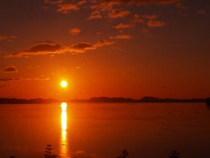 松島湾の朝日です。島々に朝日が当たり綺麗でした。