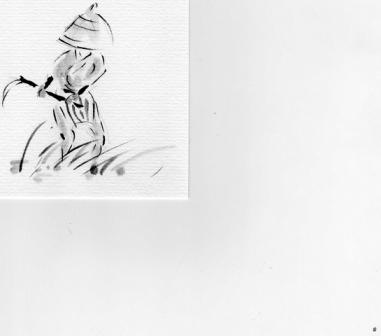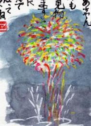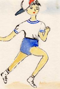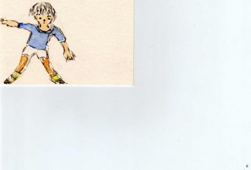 孫の事、描いたのかな?何やってるのかな?サッカーかな?それにしてはボールが見えない・・・・。