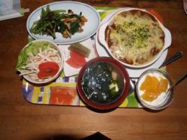 カレードリア、わかめと豆腐の味噌汁、みずのおひたし、なめこ、ごぼうとトマトのサラダ、フキとカブの漬物、甘夏のヨーグルト、ヾ(@⌒¬⌒@)ノ ウマヒィ !!! これで600円は安すぎる。居酒屋ぽー 青森市長島1-3-15電話017-723-4563