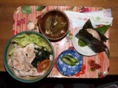 14日、居酒屋ぽーランチ冷しゃぶうどん おにぎり、フキの炒め物、ヨーグルト、600円。みさちゃんのほっとする絵筆さんが勤めているレトルト食品のお店の、豆乳粥です。とても甘くて、おかゆじゃないみたいです。おかゆパックと説明書 豆乳おかゆ、冷がいいということで冷やして食べました。