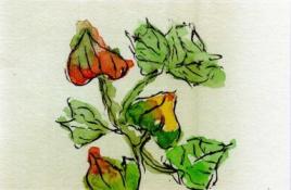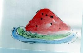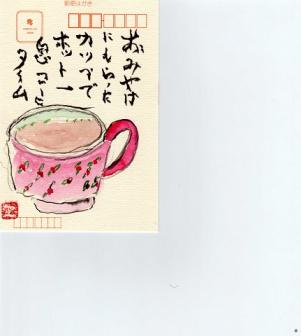 トマトですね。お袋の絵手紙、ストック最後です。お盆に実家に帰って新しく仕入れるまでお休みです。