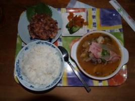 7月26日(水)居酒屋ぽーのランチ600円です。居酒屋ぽー所在地・青森市長島じょっぱり横丁、蕎麦の柿崎真裏です。 電話017-723-4563 夏野菜とアサリのラタトゥユとイカメンチハンバーグです。とてもスープとアサリと夏野菜がマッチして美味しくしてご飯おかわりしてしまいましたよ。(゜∇^*) テヘ♪