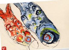 20日の日曜日、講演会があったのですが、オラは仙台出張ために行くことができず残念(T_T)。ということで、昨日は、その経済学者の先生をお連れして、7月にオープンした県立美術館に行ってきましたよ。 青森県立美術館は今シャガール『アレコ』とアメリカ亡命時代展(目玉はバレエアレコ背景画4枚が揃ったことです)をやっていて夏休みと重なり大盛況でした。今回はフィラディルフィア美術館からアレコの第3幕を借りてきて、全4幕が揃ったようです。しかし、残念ながら館内は撮影禁止のために、一切写真は撮れませんでした(T_T)。10時から、ボランティア説明員による説明が行われるというので50分間に渡り、説明してもらいました。川村さんという説明員の方だったのですが、その人がオラの顔を見て、「どこかでお会いしましたね」といいます。オラもその川村さんをどこかで見たことがあるのですが思い出せません。二人して顔を見合わせながら、最後までどこかであったことがありますねを連発していました。 まずは、そのアレコ展示ホールに行きました。ものすこごく大きい建物です。4枚の背景画がかかっておりました。このアレコはロシアの文豪プーシキンの原作であり、それをバレエ化したものです。アレコのあらすじは、ロシアの貴族の息子アレコは、ジプシー(今は差別用語として使わないですが、今はロマ族とかいいますね)の生活に憧れ、ジプシーの群れの中に飛び込みます。そしてそこでジプシーの若い娘ゼンフイラと恋に落ちます。しかし、そのジプシーの若い娘は若い男に心変わりをします。アレコは、何回も娘に男と別れて自分と付き合いなおすように迫りますが、娘は言うことを聞きません。悲痛のあまり、アレコは娘の相手の男を刺し殺しますが、娘も「この人がいないなら私の人生はないも同じ」ということで、自らのアレコの刃に飛込み死にます。 最初の第1幕は、「月光のアレコとゼンフィラ」とゼンフィラと男の象徴である雄鶏が描かれ居ます。熱情的な光景を描いています。第2幕は、ジプシーの生活の中で、楽しく踊って歌う生活が描かれていますが、黒い猿が不吉な前兆を表しています。第3幕は、嫉妬に狂うアレコの姿と心象心理を描いています。第4幕は、男を刺し殺したアレコの心象心理を描いています。左に墓地がたくさん書かれています。 そしてアレコの次の部屋には、シャガールが迫害を受けたという3枚の絵が描かれています。これは元々一枚の絵だったものを3枚に分割しています。先の2枚の絵にはキリストがユダヤの象徴である2本線の腰布を巻きつけた姿で登場しますが、3枚目の解放の絵には薄く小さくしか登場しません。そして登場する人々の表情が3枚それぞれに、描かれており、迫害の状況の様子が書かれていますが、3枚目の解放の絵には安堵して生き生きとした民衆の姿が描かれています。 また、バレエ、アレコで使った舞台衣装も今回、特別展ということで借りてきており、妻ベラが「アレコ」のために作った。そして、シャガールが、直接絵の具でペインテングした舞台衣装も展示さてりており、オラはトランプのドレスが気に入りましたね。あと舞台で使ったキツネの張りぼてのお面も公開されていました。 そして、妻のベラが死亡してからの、作品も展示されていましたが愛する妻ベラを失ったシャガールの悲しみがありありと描かれていました。 いずれにしても列車の時間があったため1時間くらいしか、いられませんでしたが一日かけてゆっくり見たいと思いましたよ。