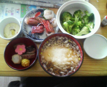 1.食べた物の画像です。 1月1日から3日まで実家で食べました。 1月1日の昼食は蕎麦とブロッコリーと大晦日のご馳走の残りの刺身、茶碗蒸し他です。 1月1日の夕食は雑煮とブロッコリー、大晦日のご馳走の残りの刺身、海老焼き、ブリの照り焼き、ナマコ、カルパッチョです。 1月1日の夕食はリンゴも食べました。 1月2日の朝食は納豆ご飯、味噌汁、カボチャ、黒豆、ナマコ、ブロッコリー、刺身、茶碗蒸し、カルパッチョ、リンゴ、牛乳です。 1月3日の朝食は納豆ご飯、ソイ味噌汁、黒豆、タイ刺身、カルパッチョ、海老焼き、ブリ照り焼きです。 1月3日の夕食は実家です。鰈塩焼き、すき焼きです。 下の2つポチしてくれるとうれしいです。(●^o^●) 楽天ブログランキング 2.昨日と今日の血圧です。昨日は上が114と低かったんですかが、上は90とちと高かったです。今日の血圧は上が123、下が93と今日も下が高かったです。昨日今日とちと下の血圧が高いのが気がかりです。今日はこれから夜にむつ市での会議があるので出かけて今日は実家に泊まって明日帰ってきます。行ってきまーす。 3.今朝の体重。 昨日で酒をやめてから8日目でした。今朝の体重は65.2キロと少し減ってきました。やはり酒を飲まないと体重も減る? 4.フロム蔵王の福袋安くておいしくて最高です。2010福袋【送料無料】デザートてんこもり・8種計30個詰め合わせセット みなさんまぜひ試してみてねー。