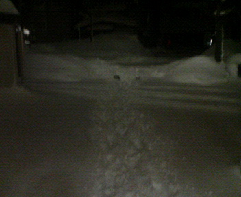 実家奥の道路は杉林で行き止まりになっていてそこに除雪車が除雪した雪を置いて行くのでそこにオラの実家の雪を投げています。